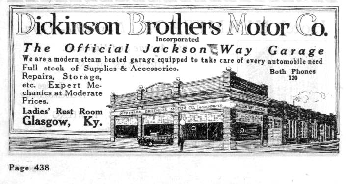 After the electric light plant was sold, Dickinson Brothers went into the automobile business, having the agency for both Ford and Overland. Ironically, the brothers did not drive a car, but they sold them, anyway, and within a year built a garage at the corner of Green and Wayne Street.