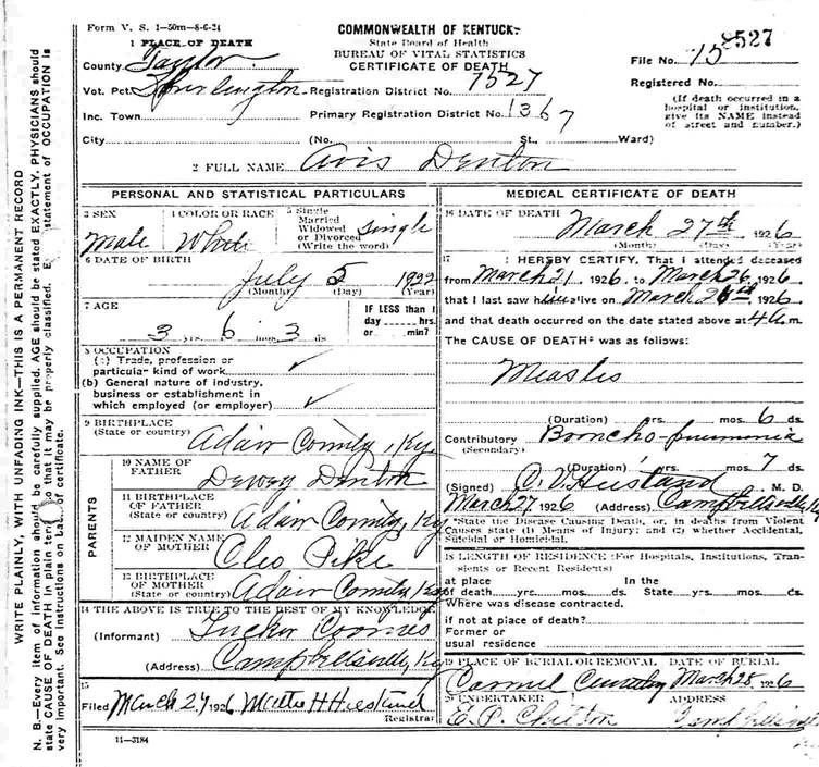 Death Certificates "Denton" |