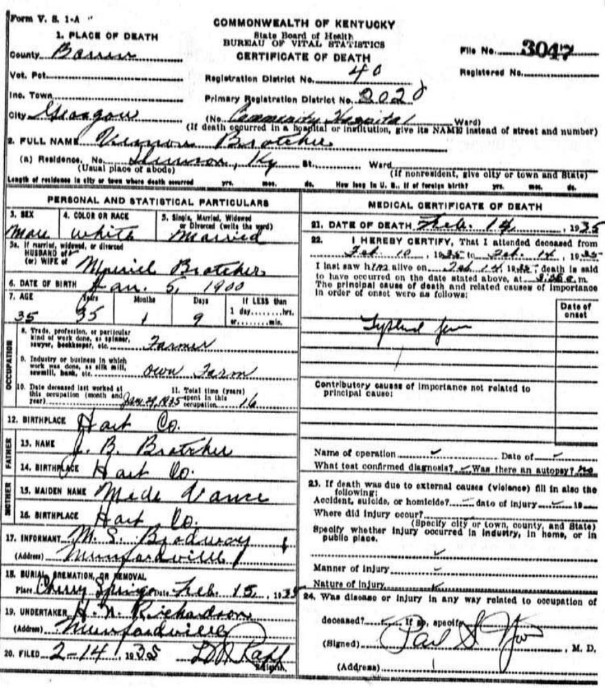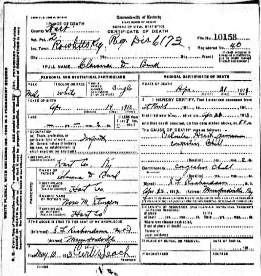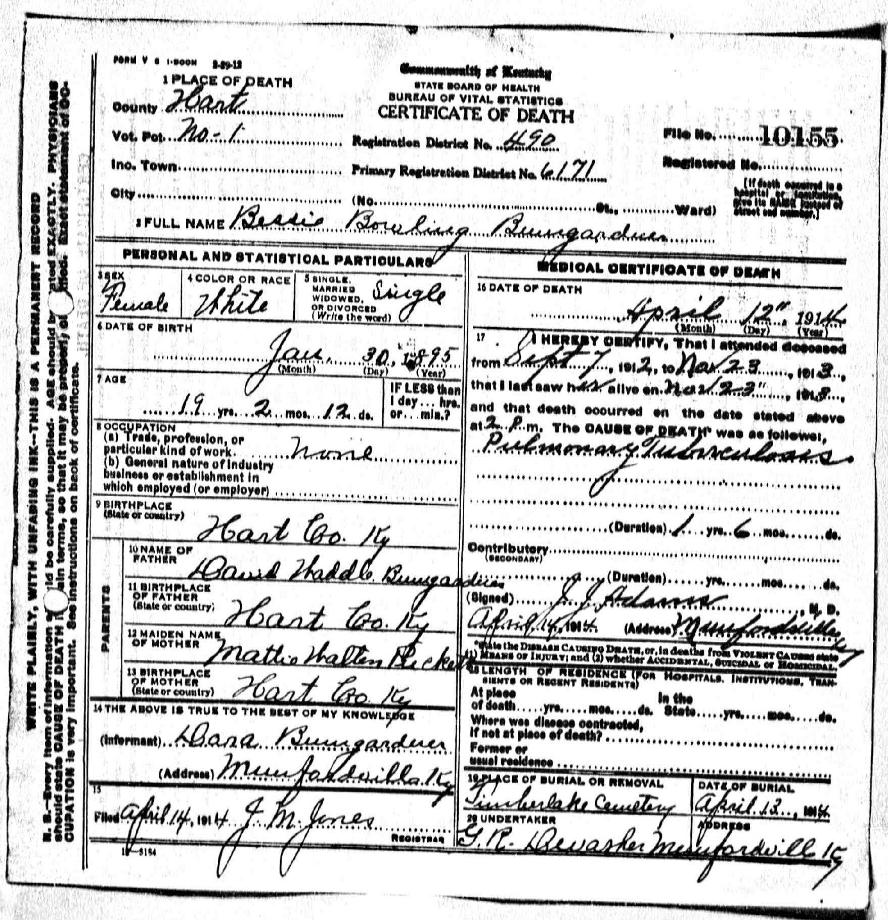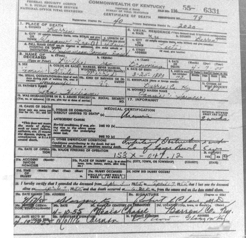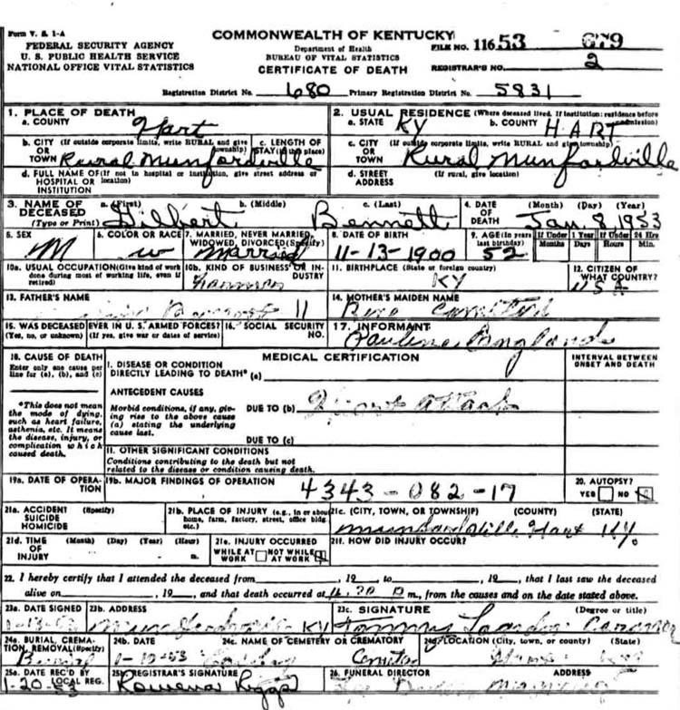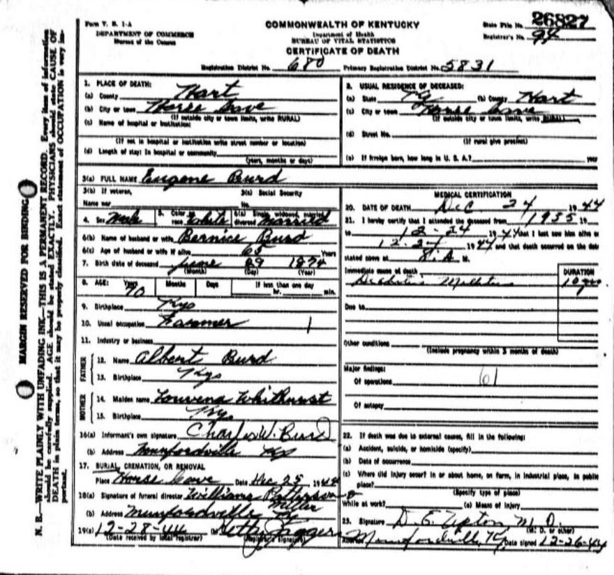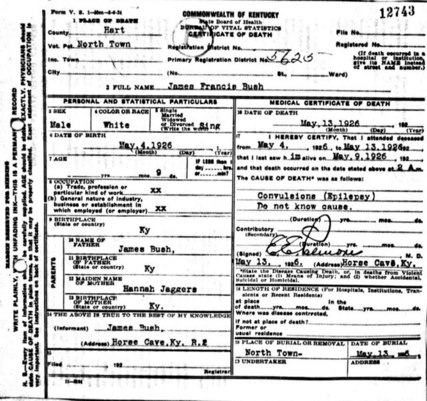 | Bush, Eugene Tildon | Barren |
