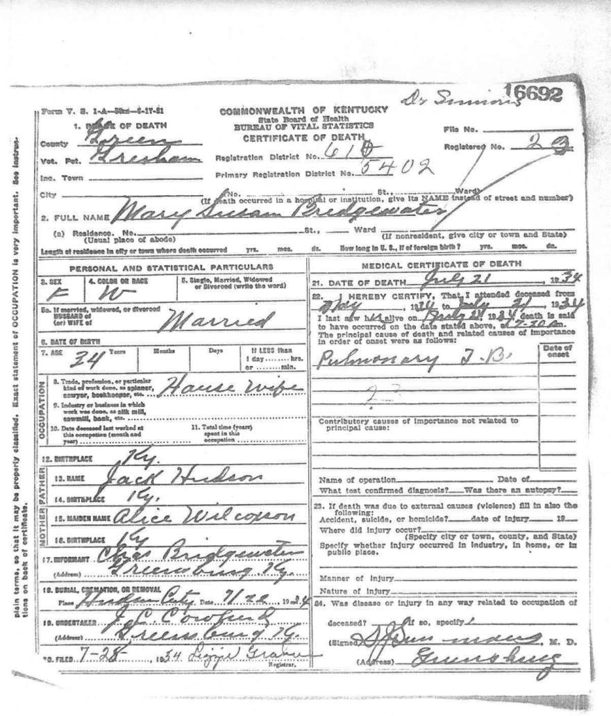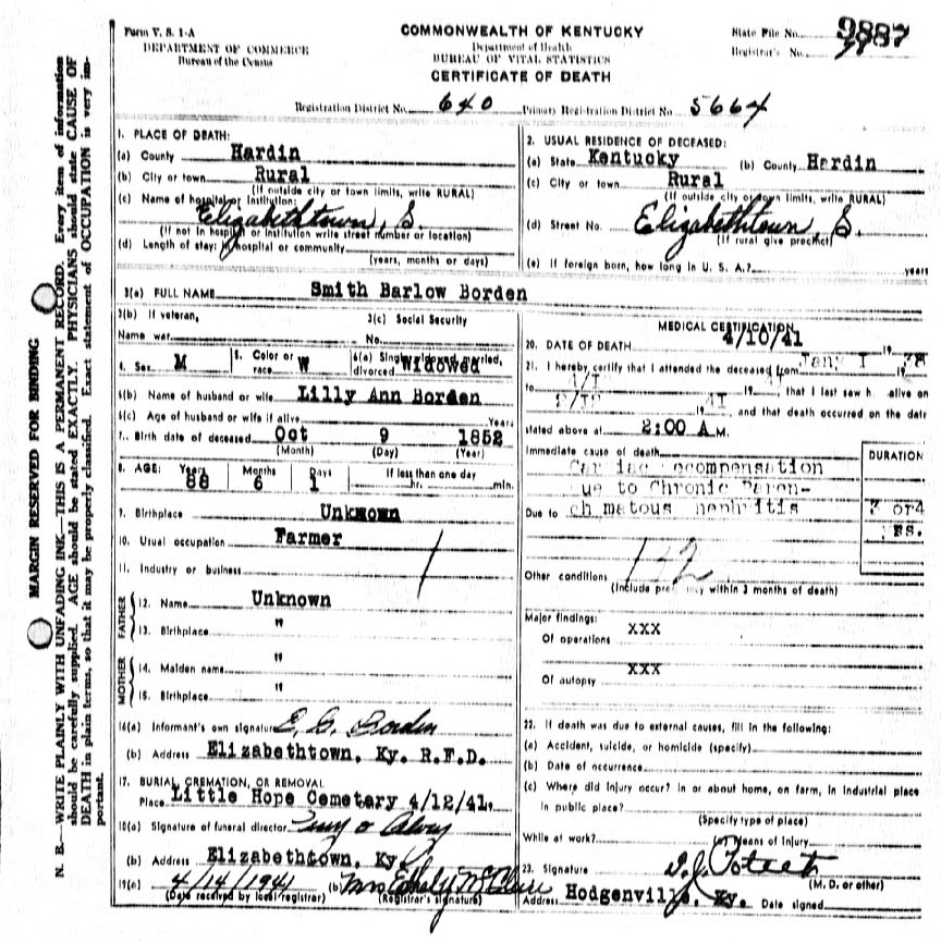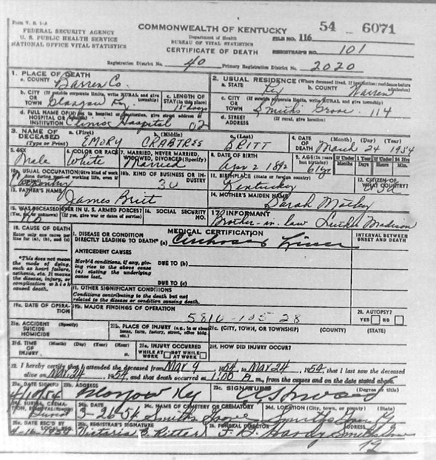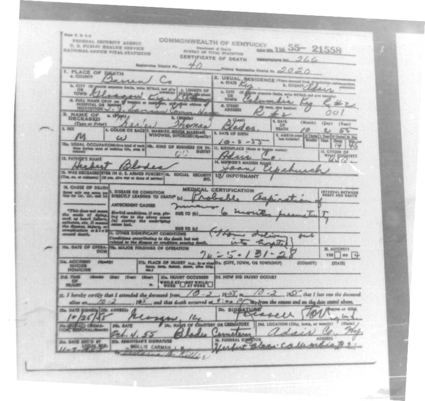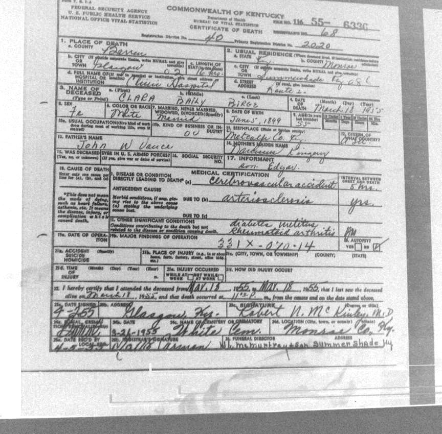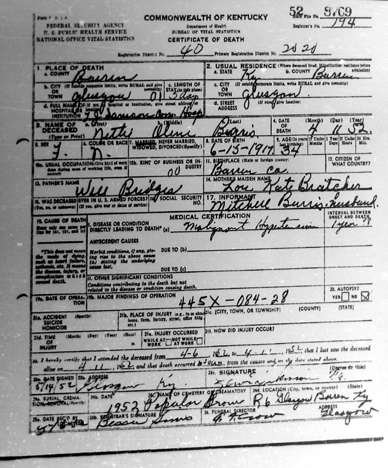 | Bush, Eugene Tildon | Barren |