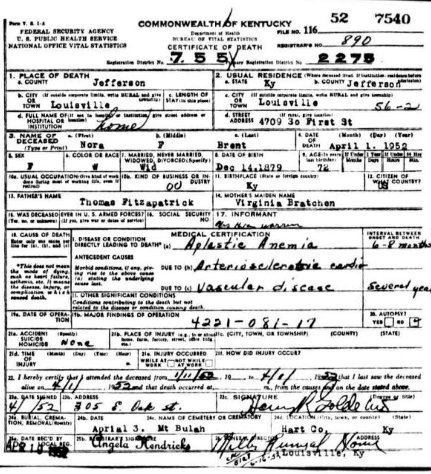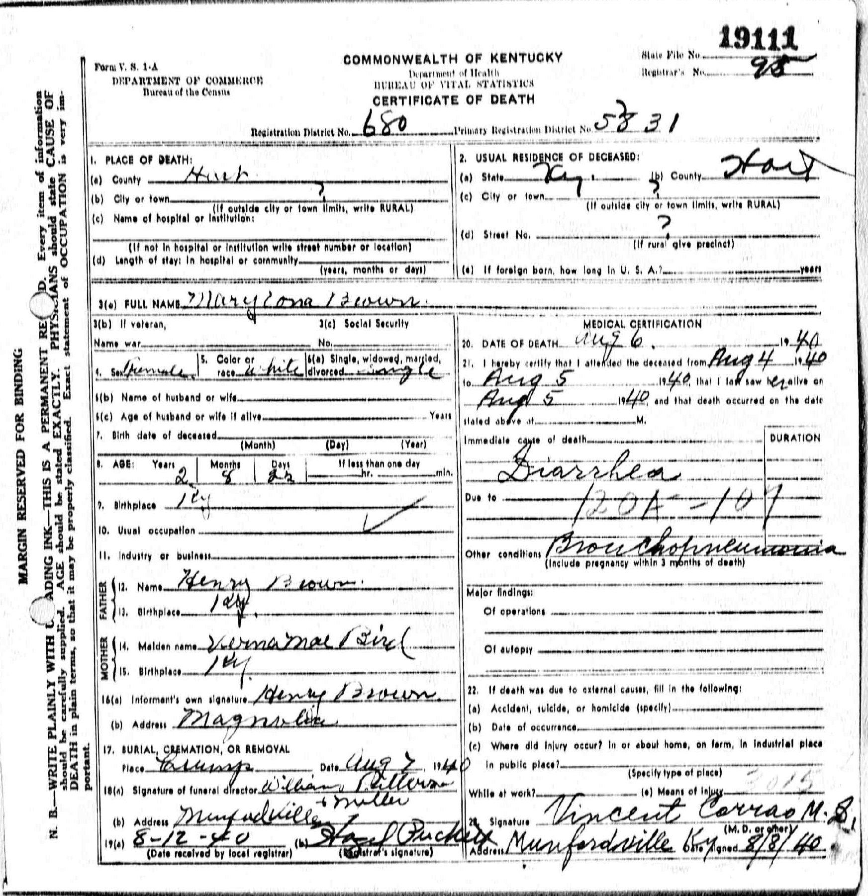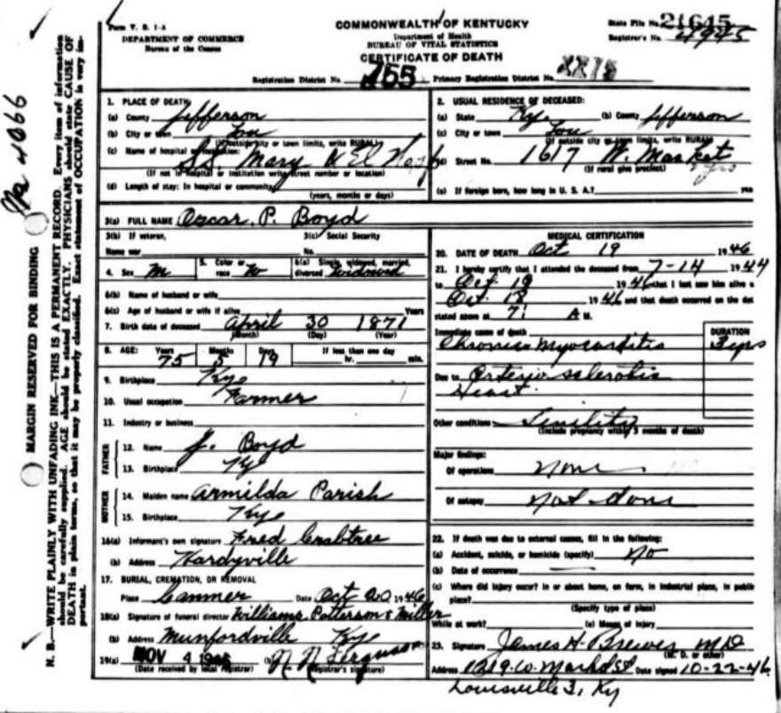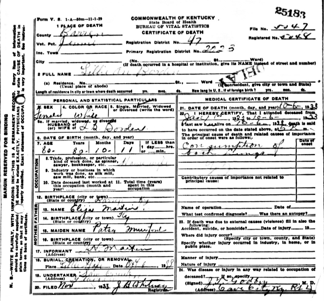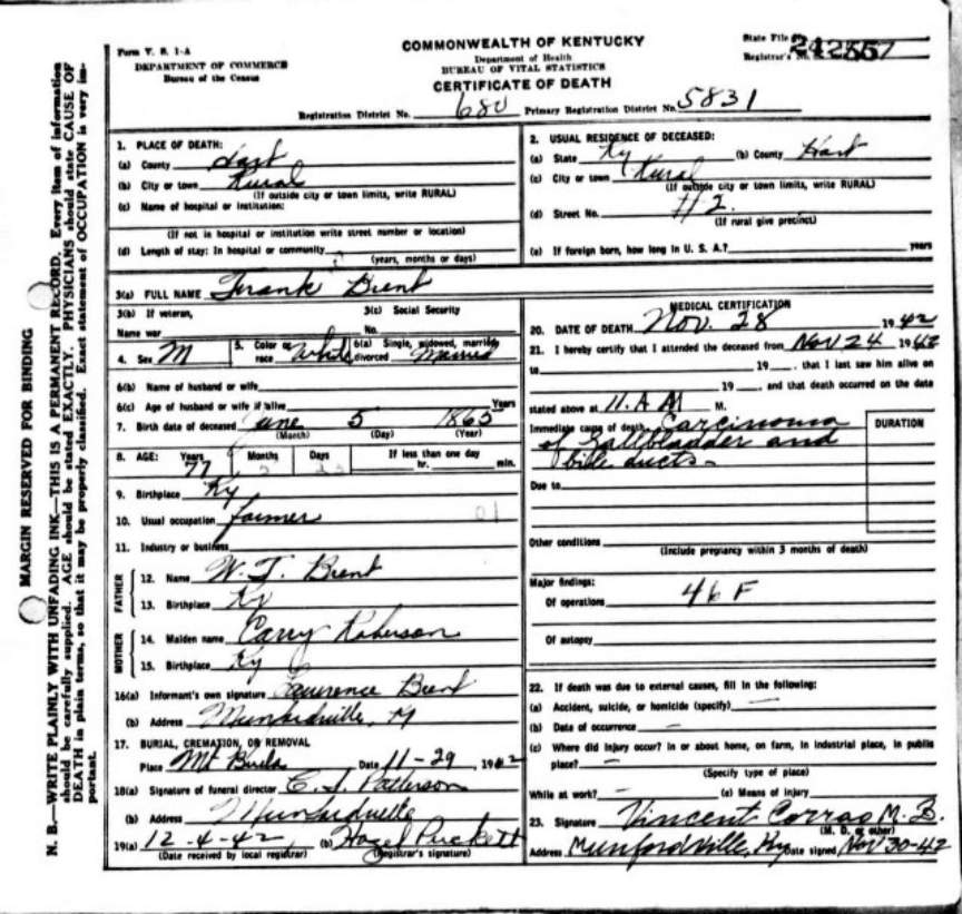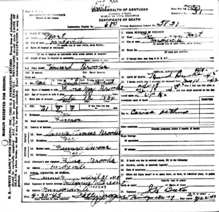 | Bush, Eugene Tildon | Barren |