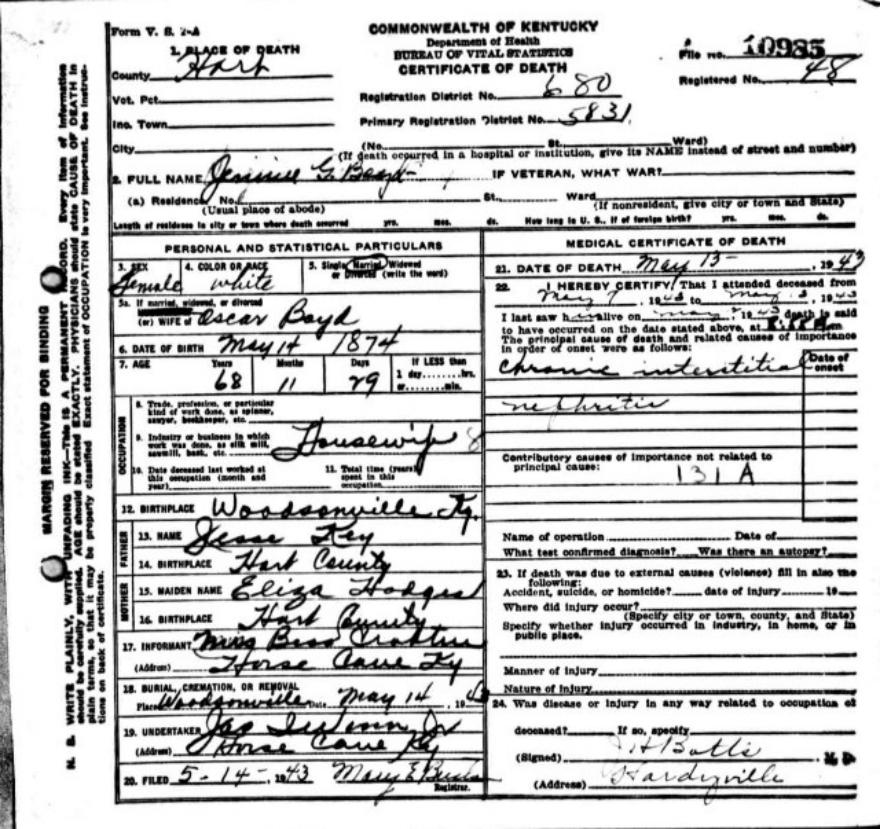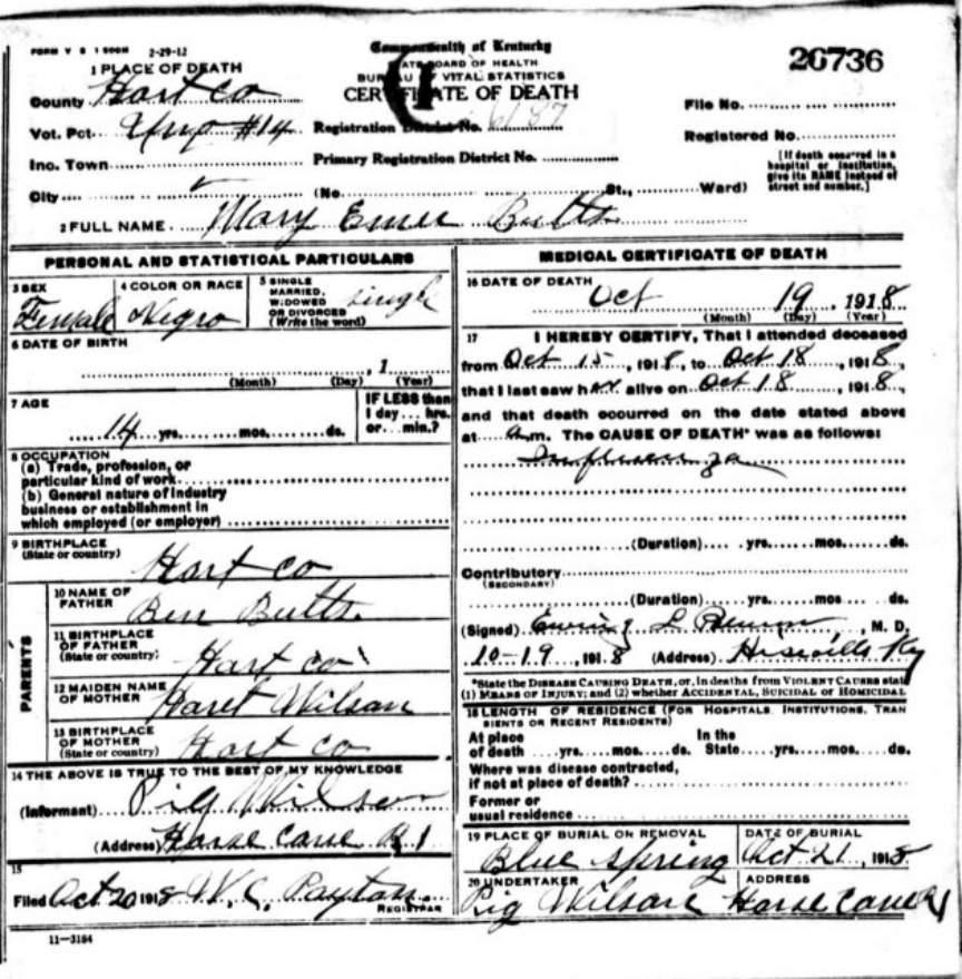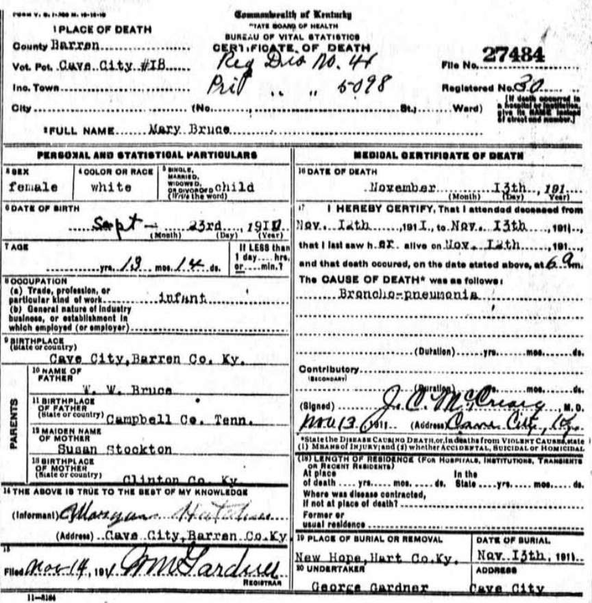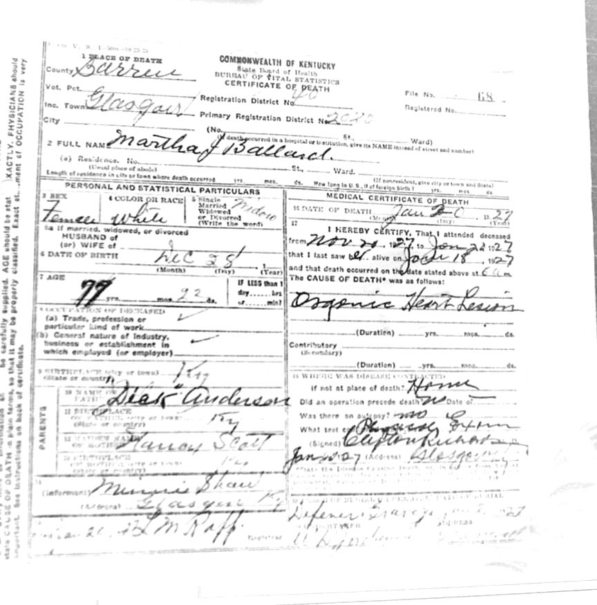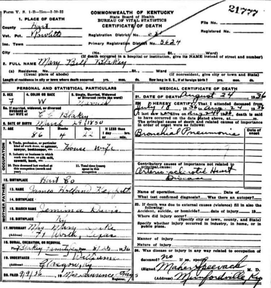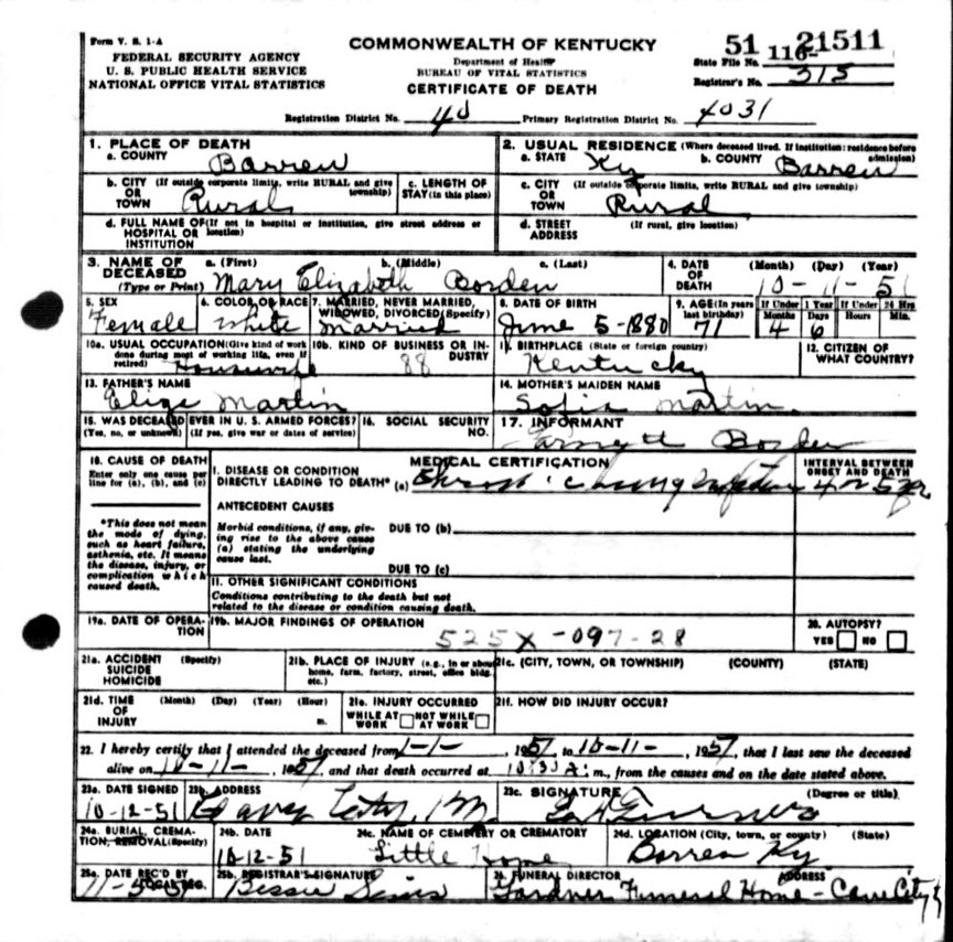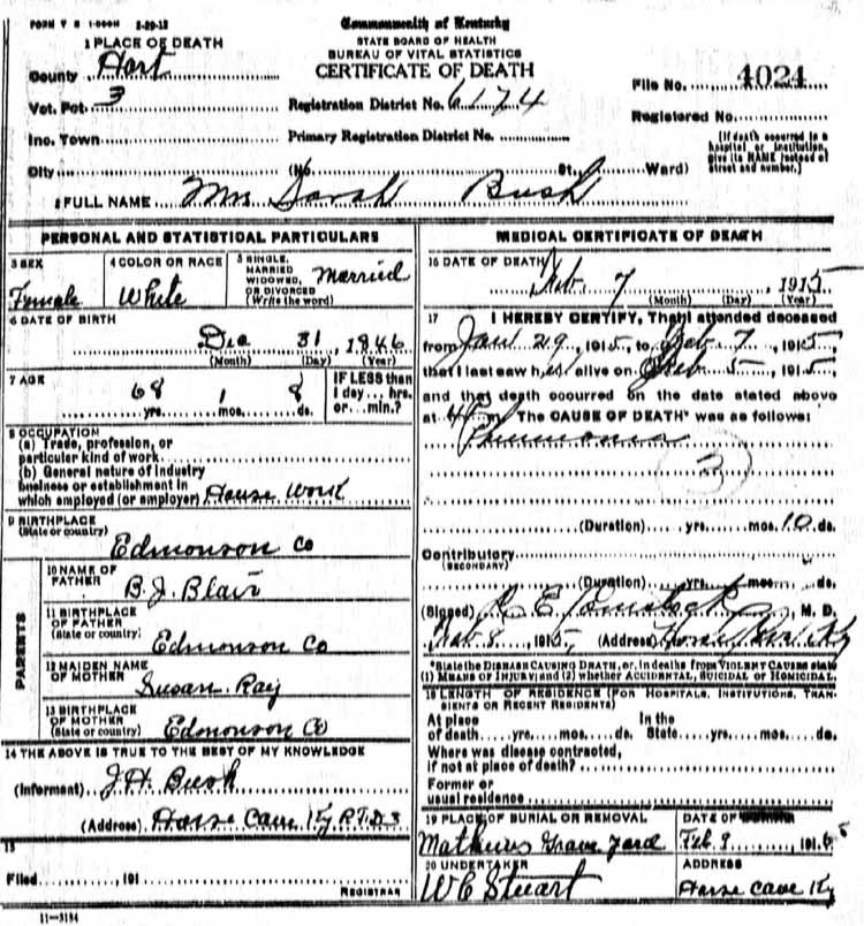 | Bartlett, Mary Tennessee | Barren |