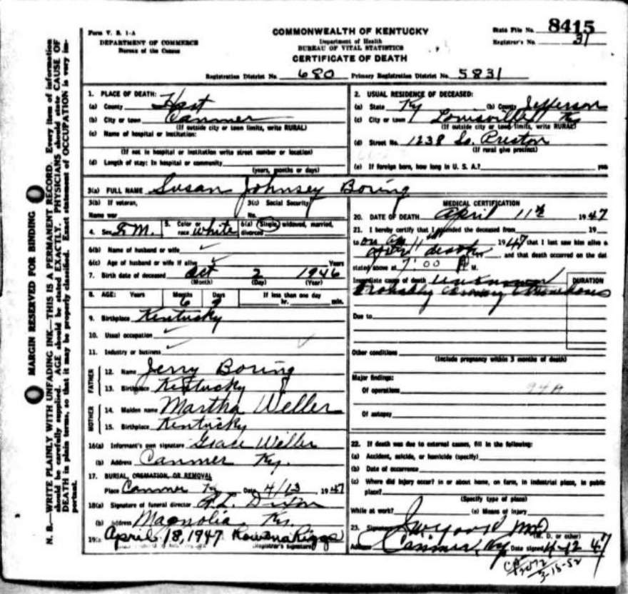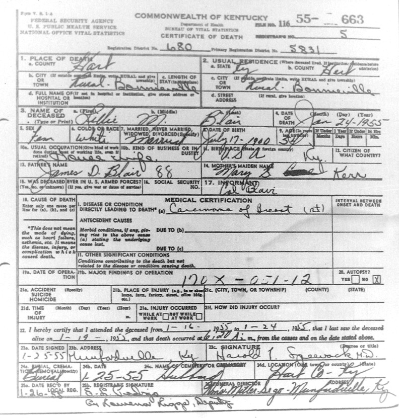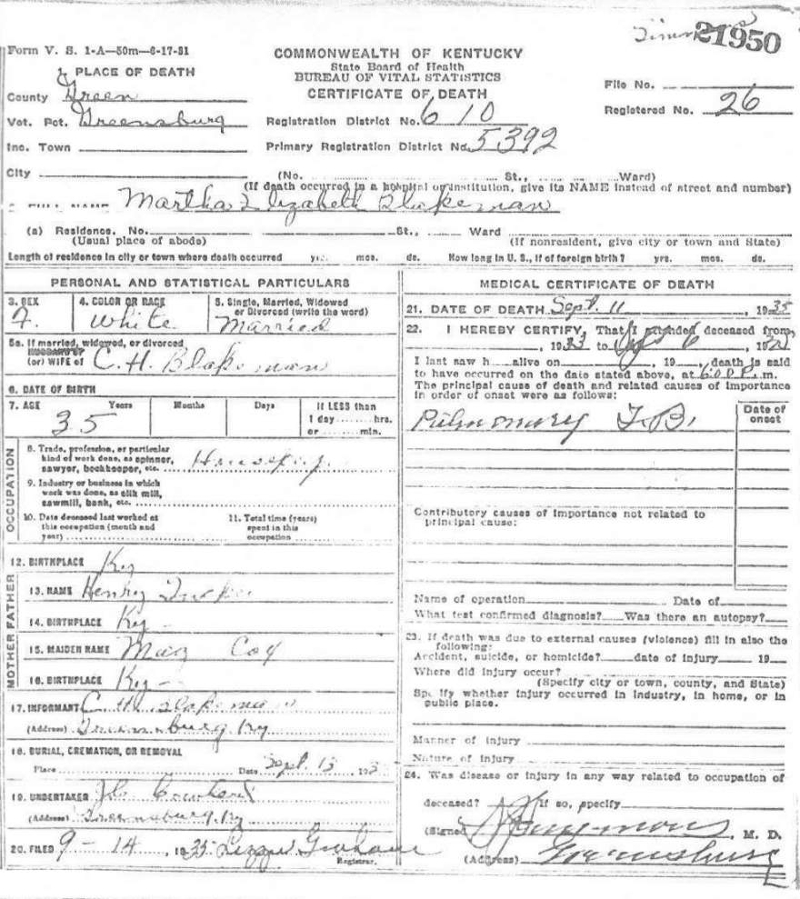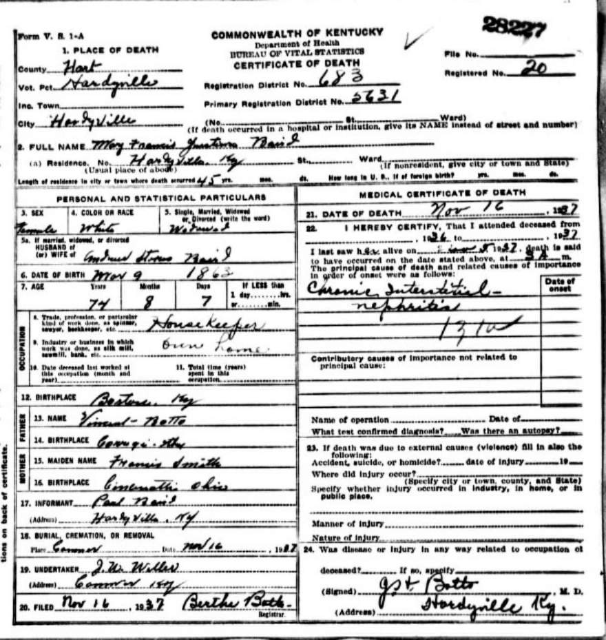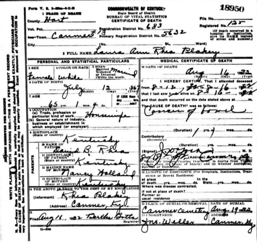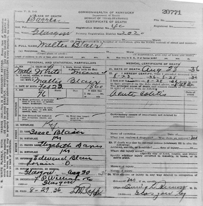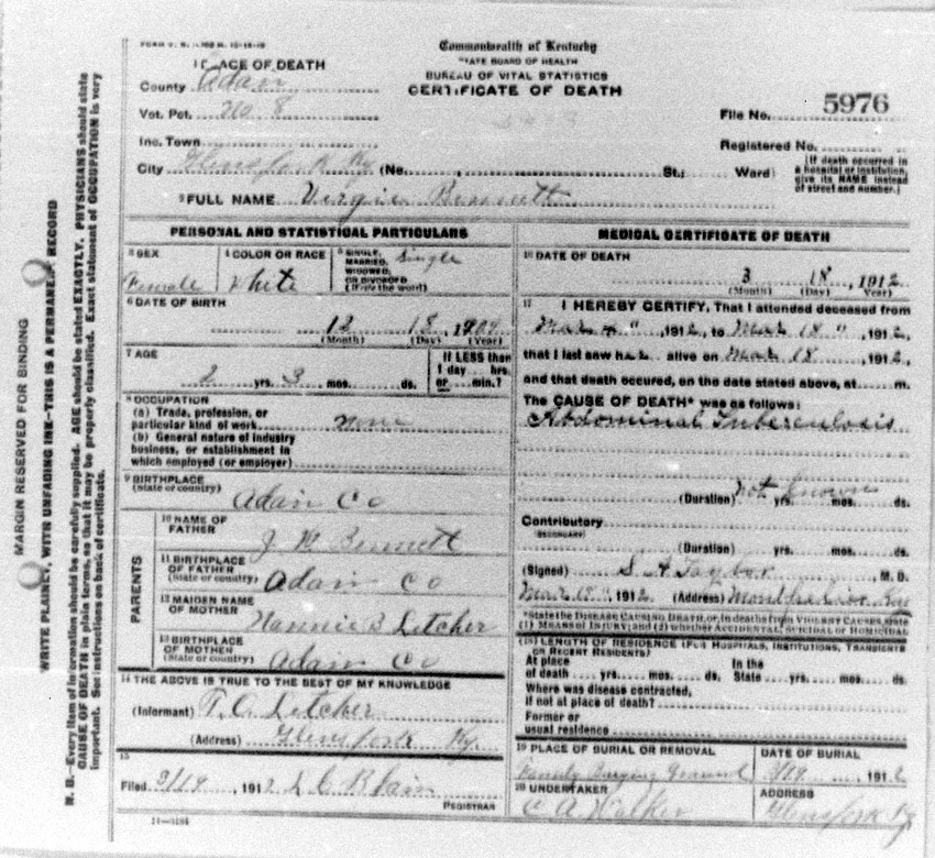 | Bartlett, Mary Tennessee | Barren |