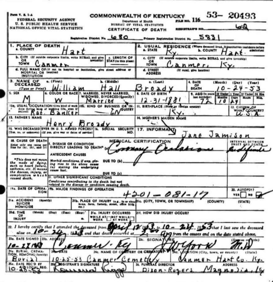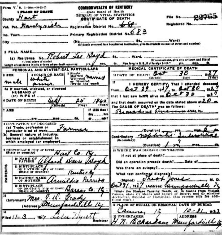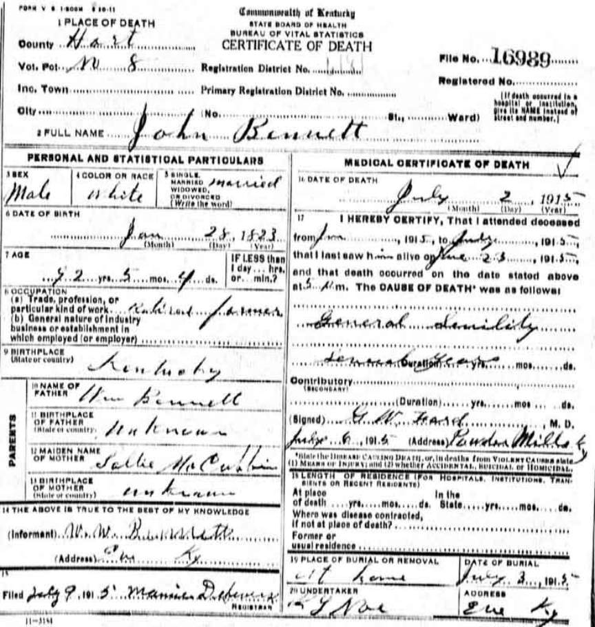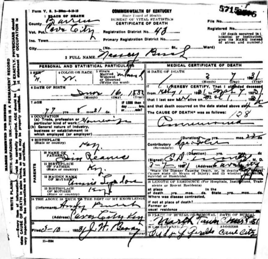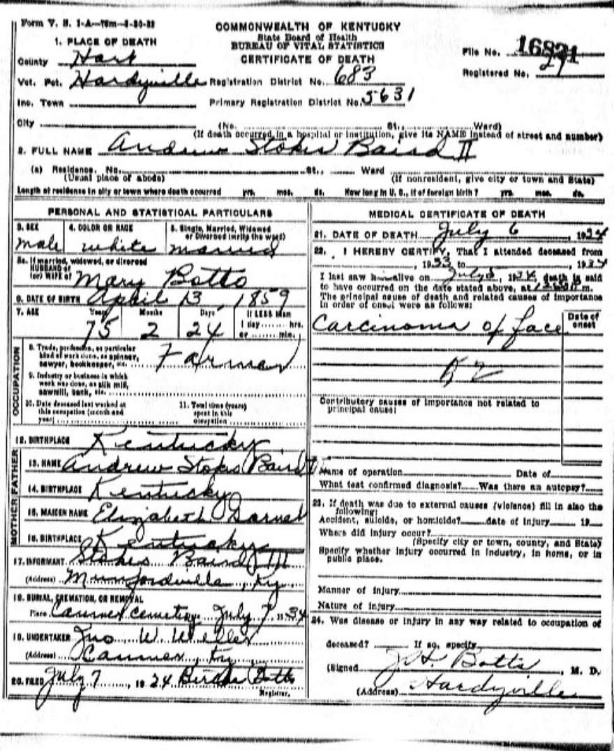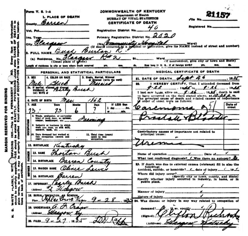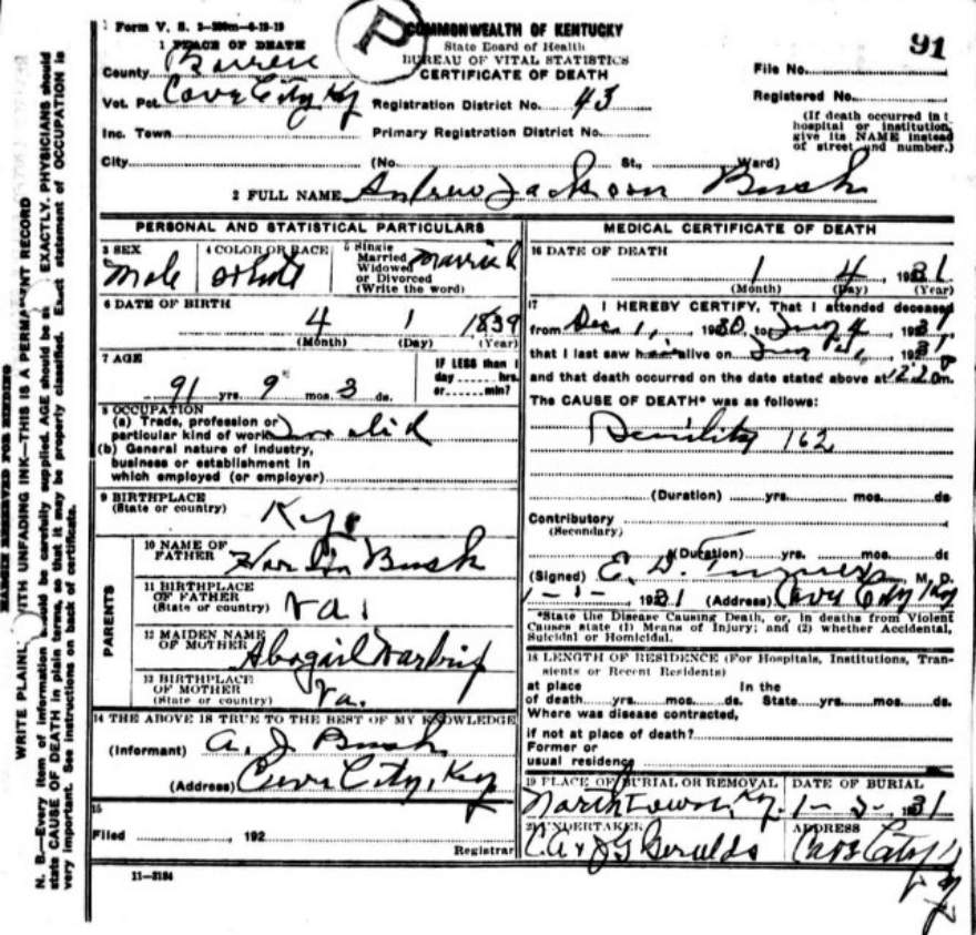 | Bush, Andrew Jackson | Barren |