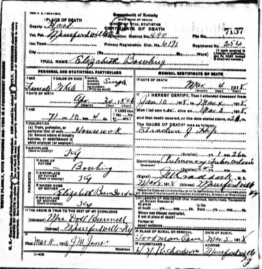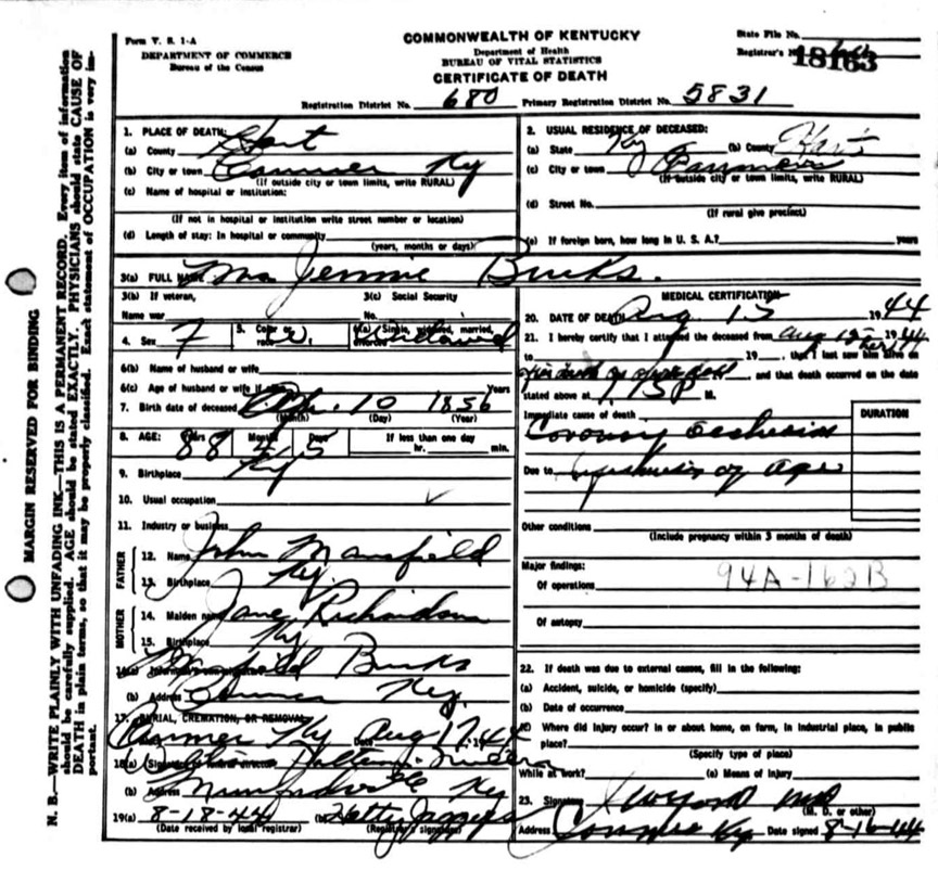 | Burks, Martha Virginia "Jennie" | Mansfield |