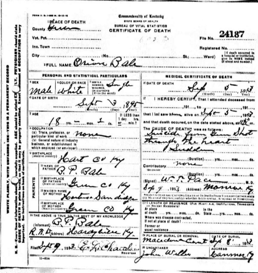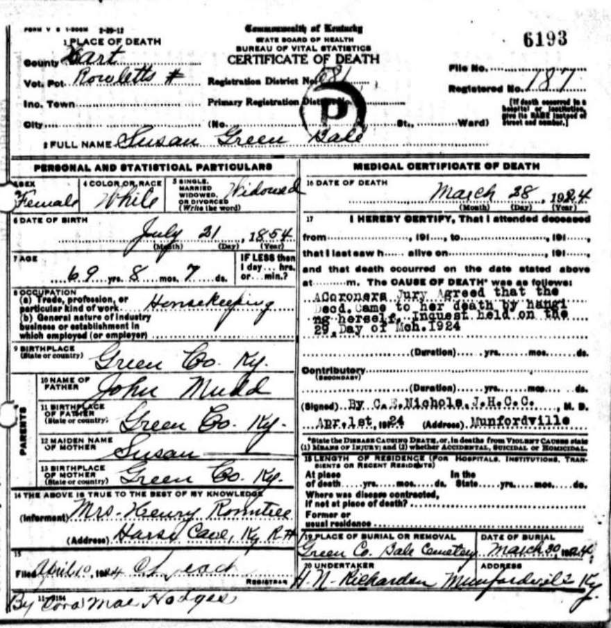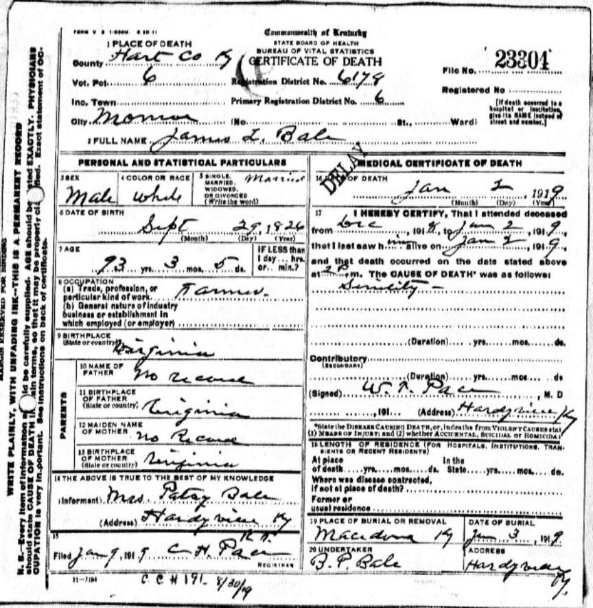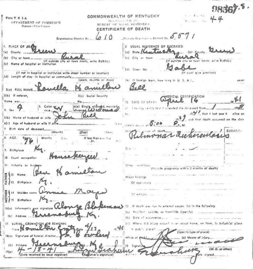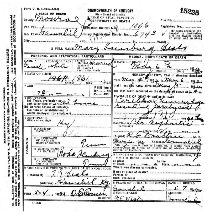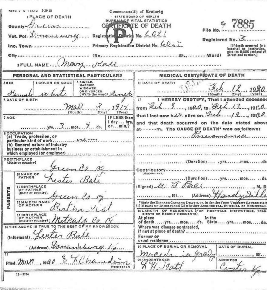 | Bale, Mary | provided by Green Co. Genealogical Society | |||