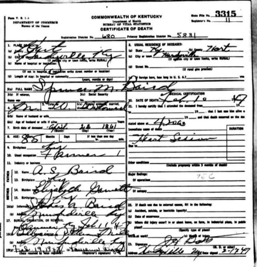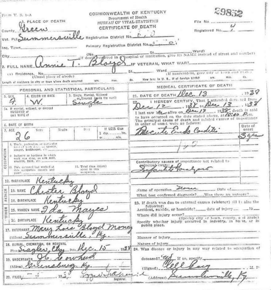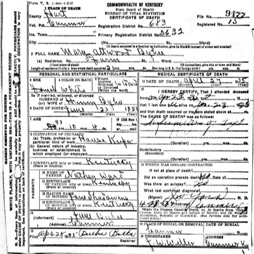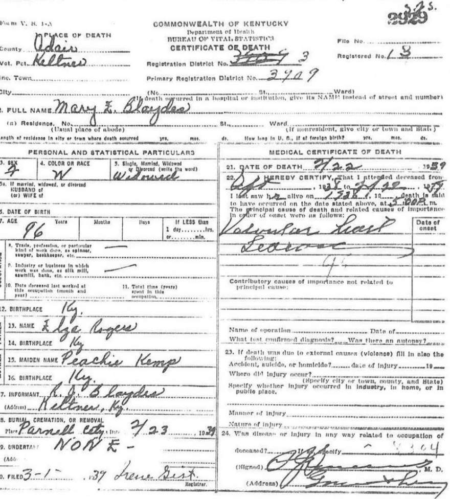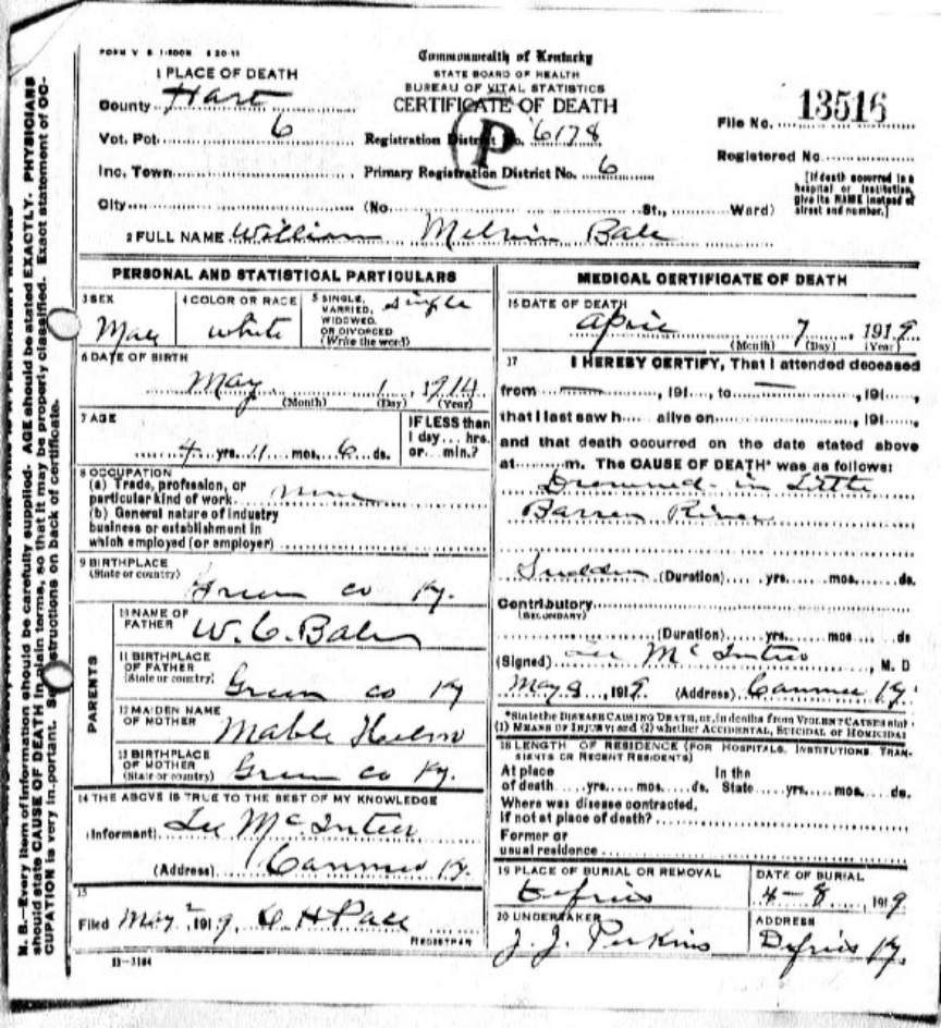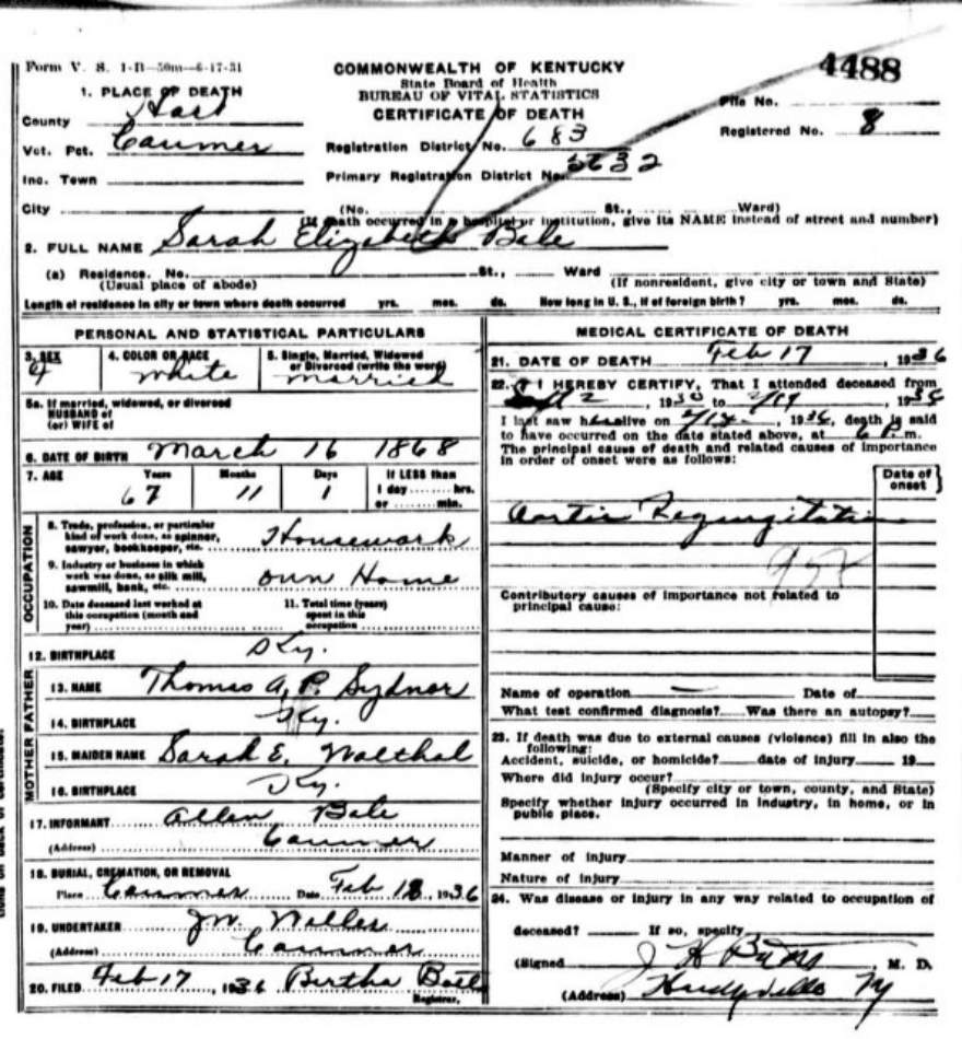 | Bale, Mary | provided by Green Co. Genealogical Society | |||