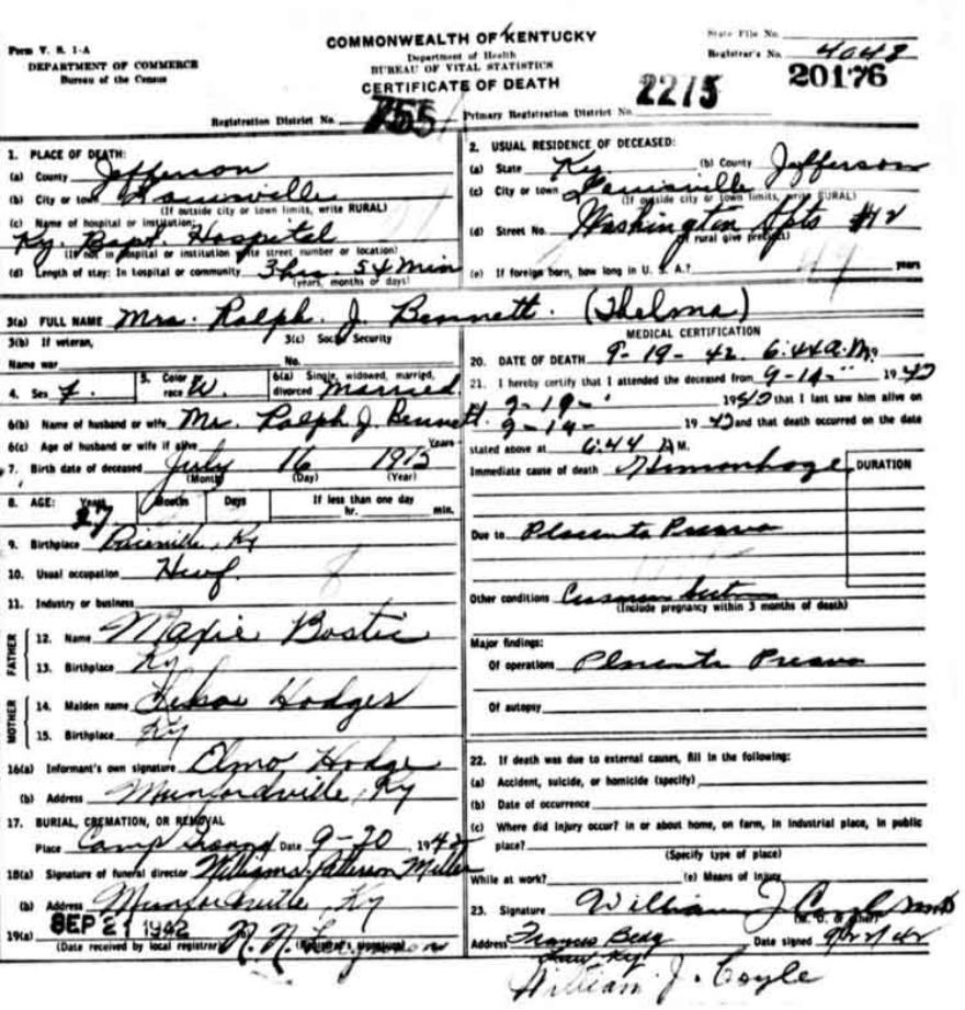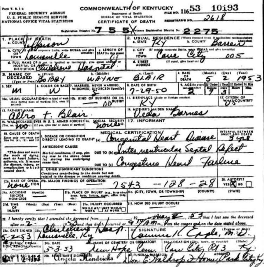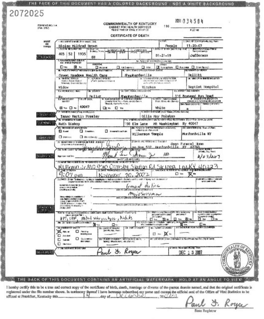 Death Certificates "B" |