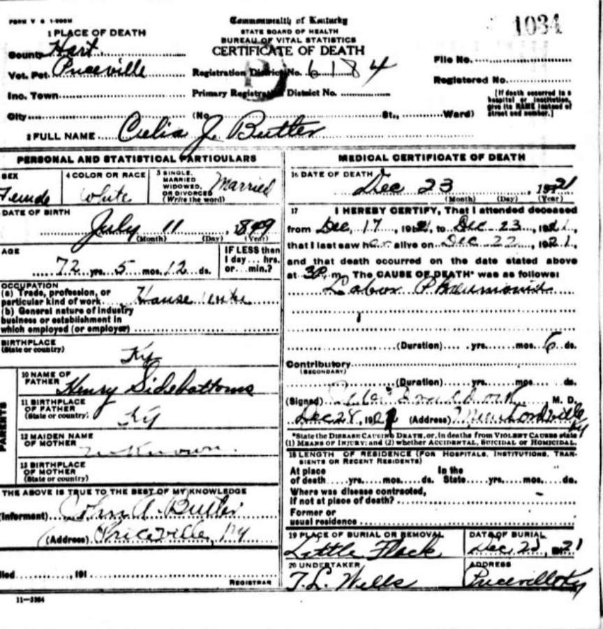 | Butler, Celia J. | Sidebottom |