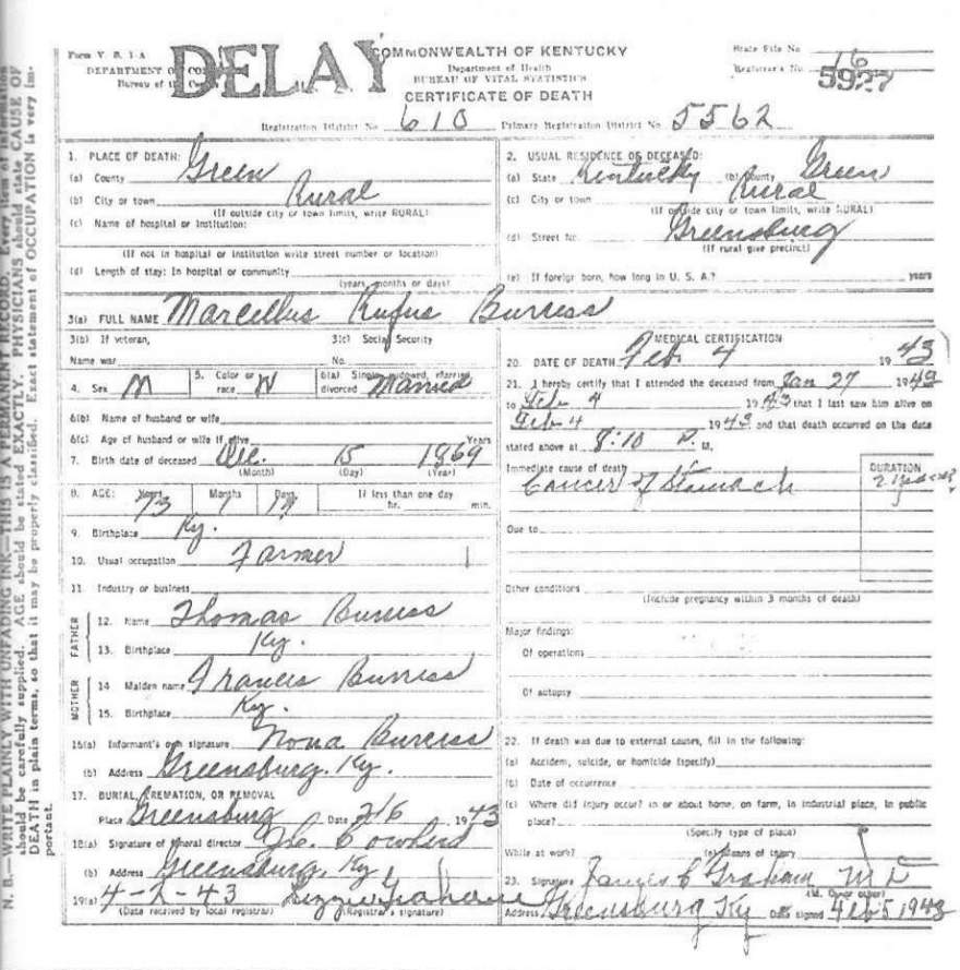 | Burress, Marcellus Rufus | provided by Green Co. Genealogical Society | |||
