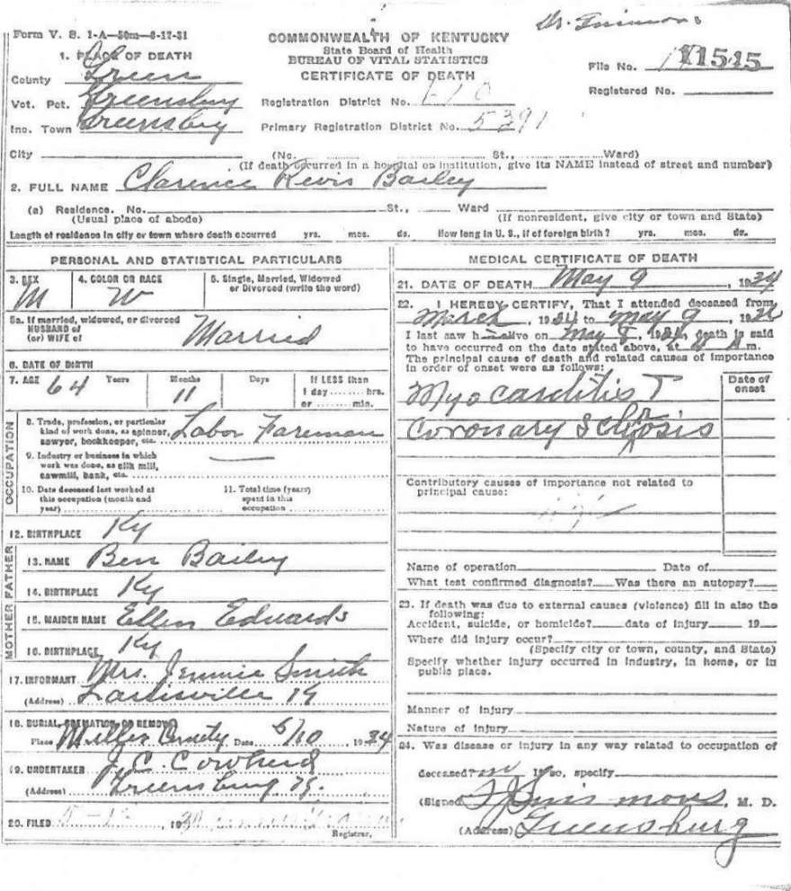 | Bailey, Clarence Revis | provided by Green Co. Genealogical Society | |||