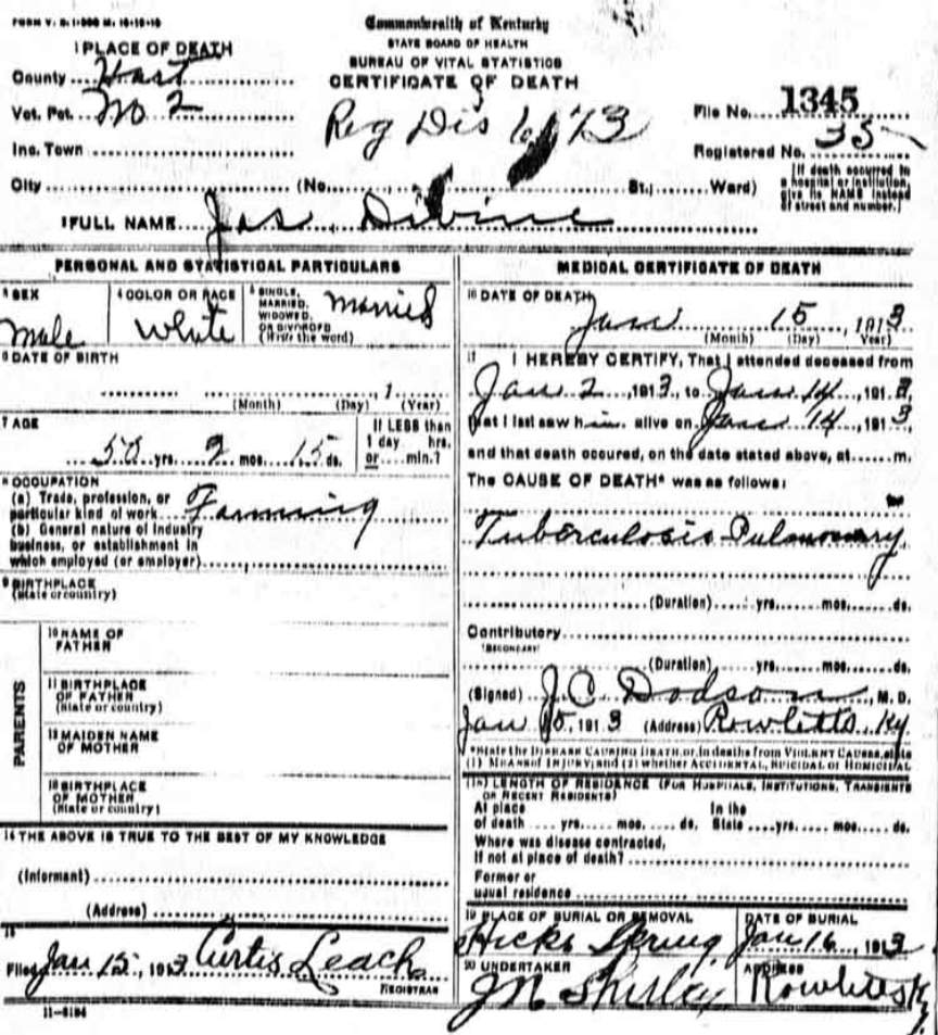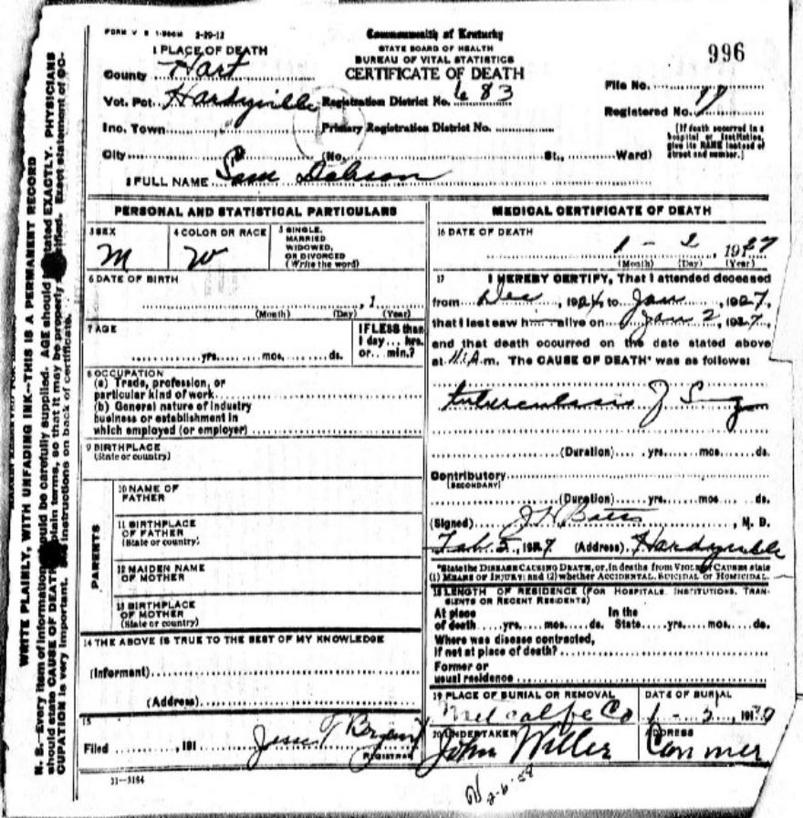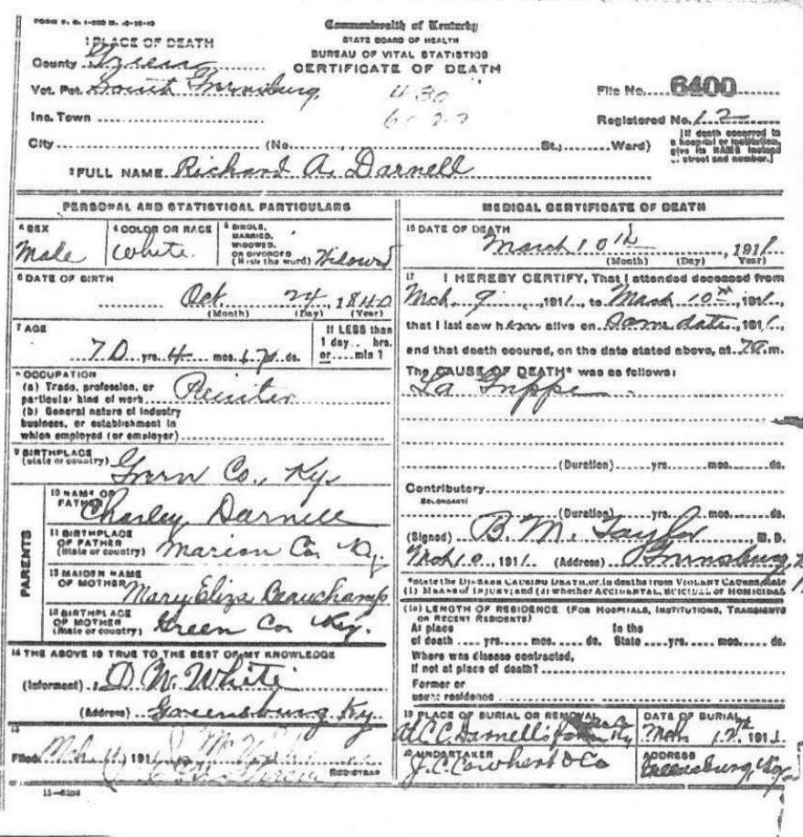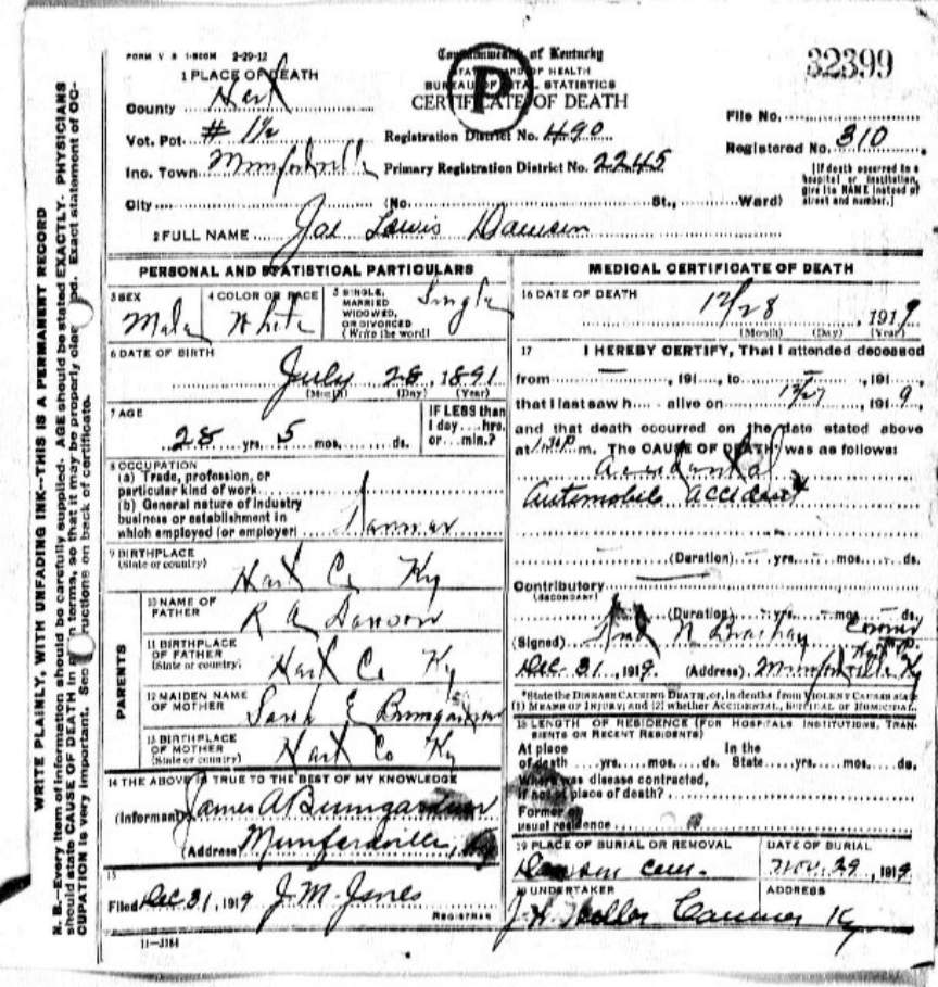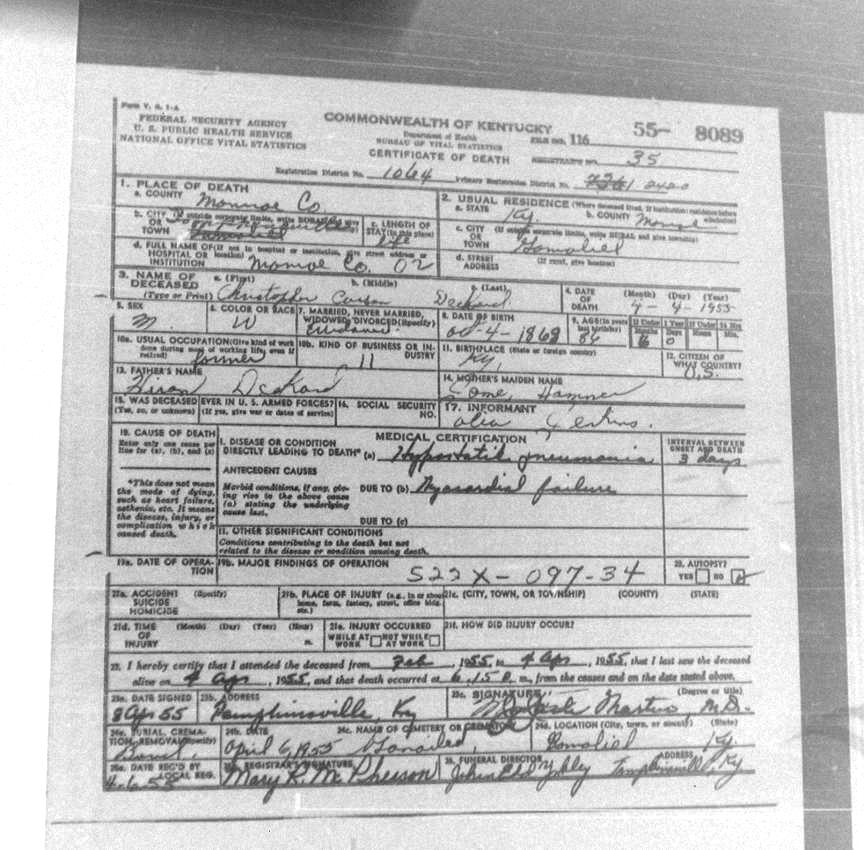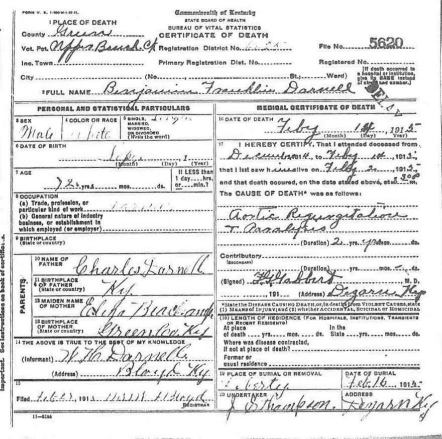 | Darnell, Benjamin Franklin | provided by Green Co. Genealogical Society | |||