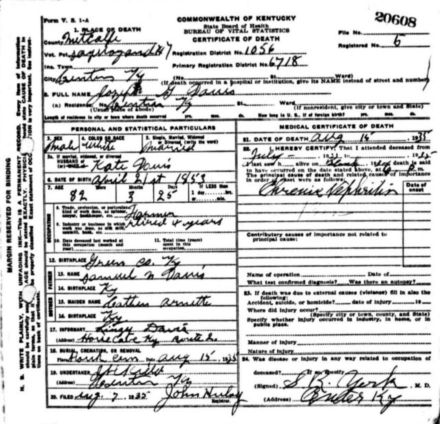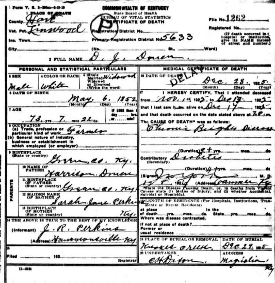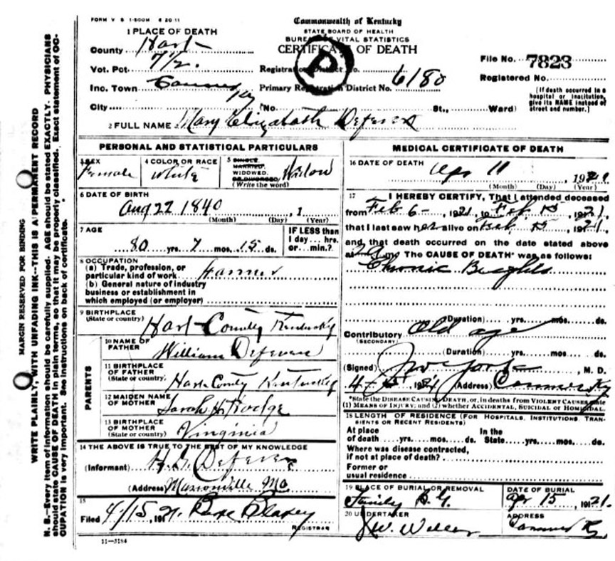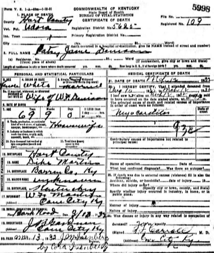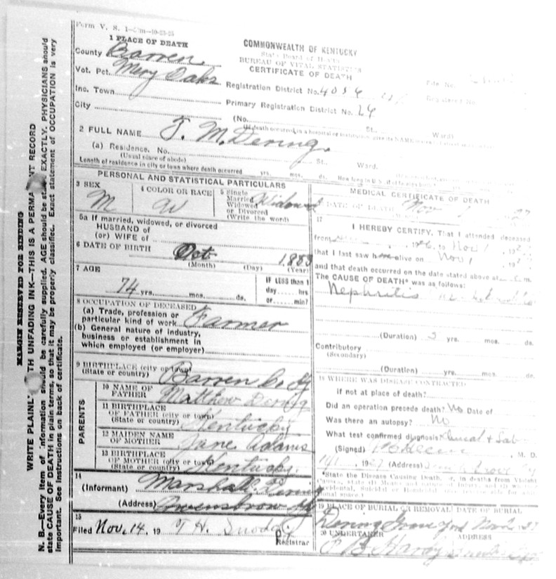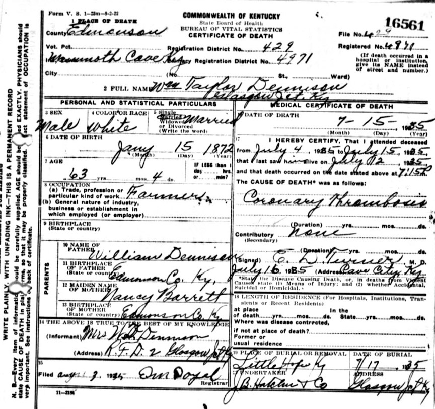| Darnell, Benjamin Franklin | provided by Green Co. Genealogical Society | |||