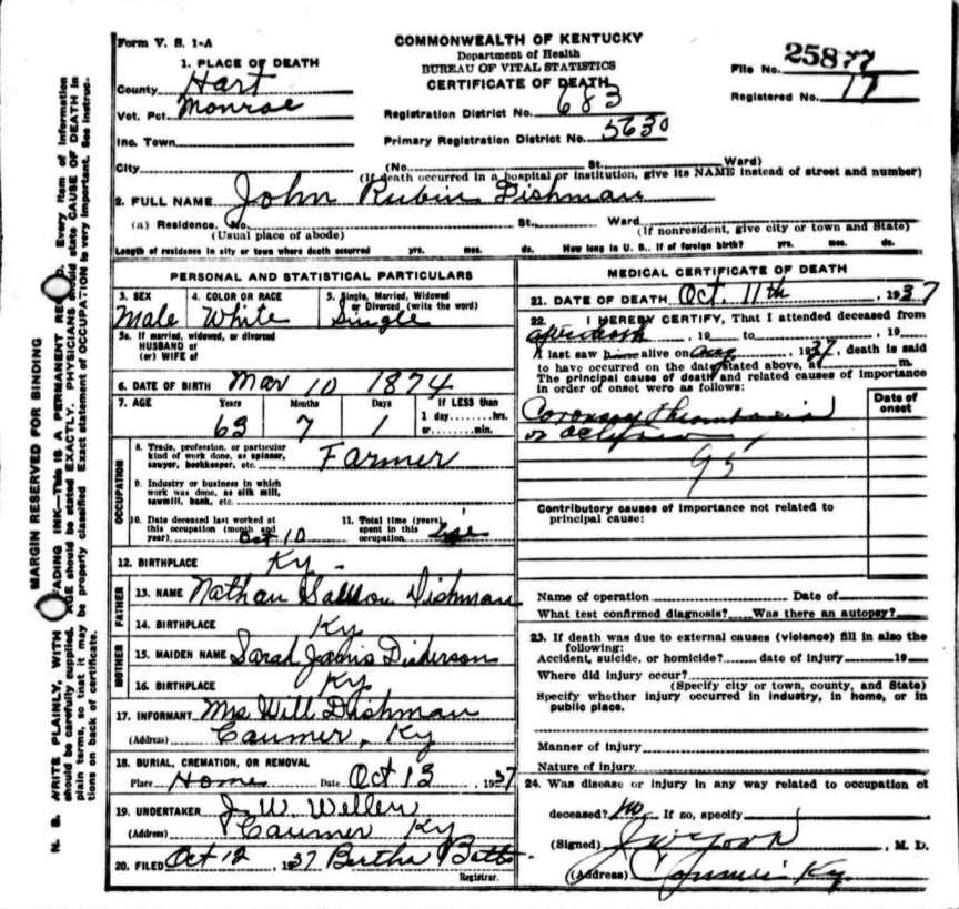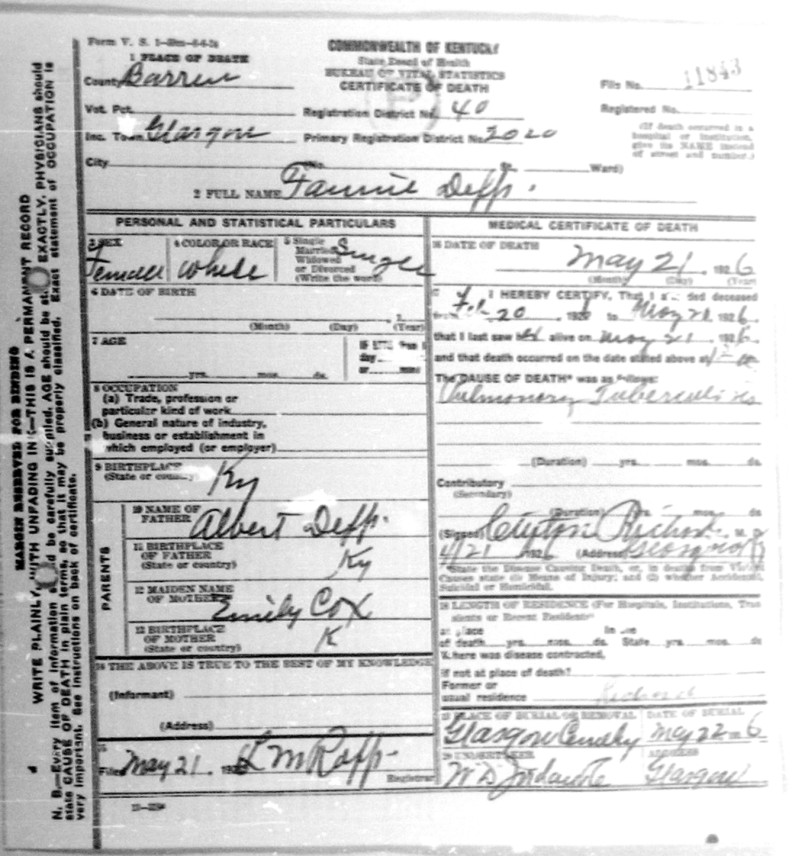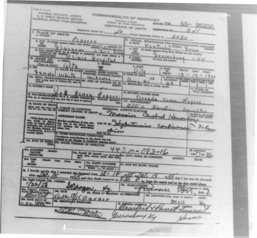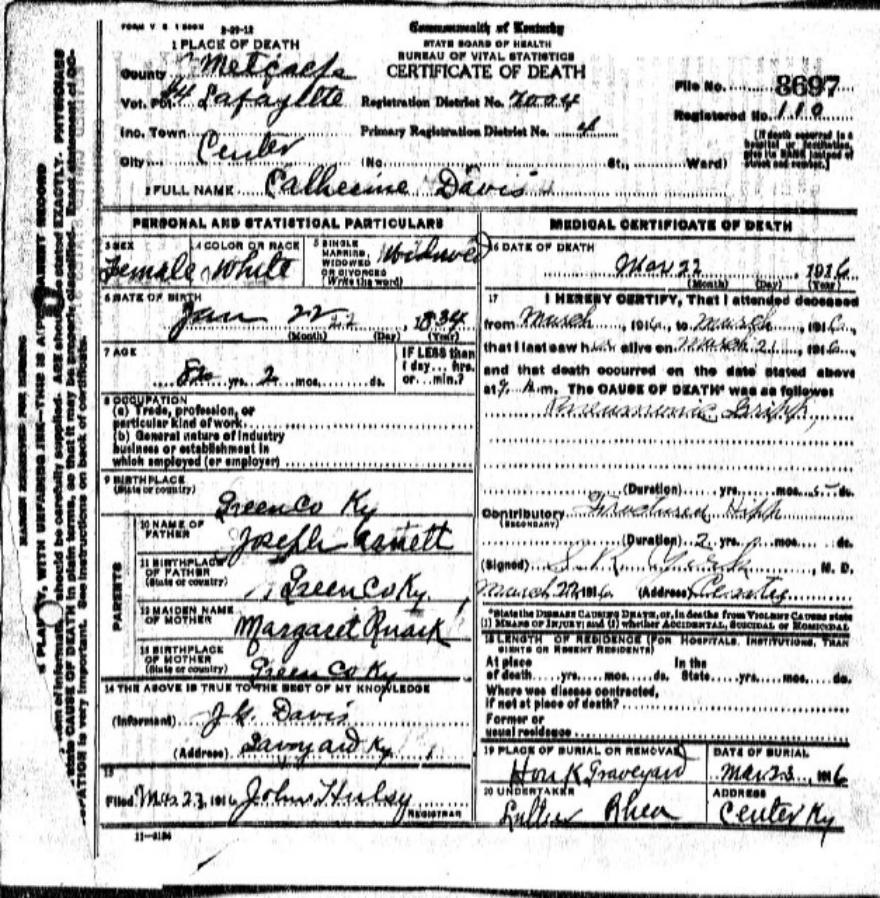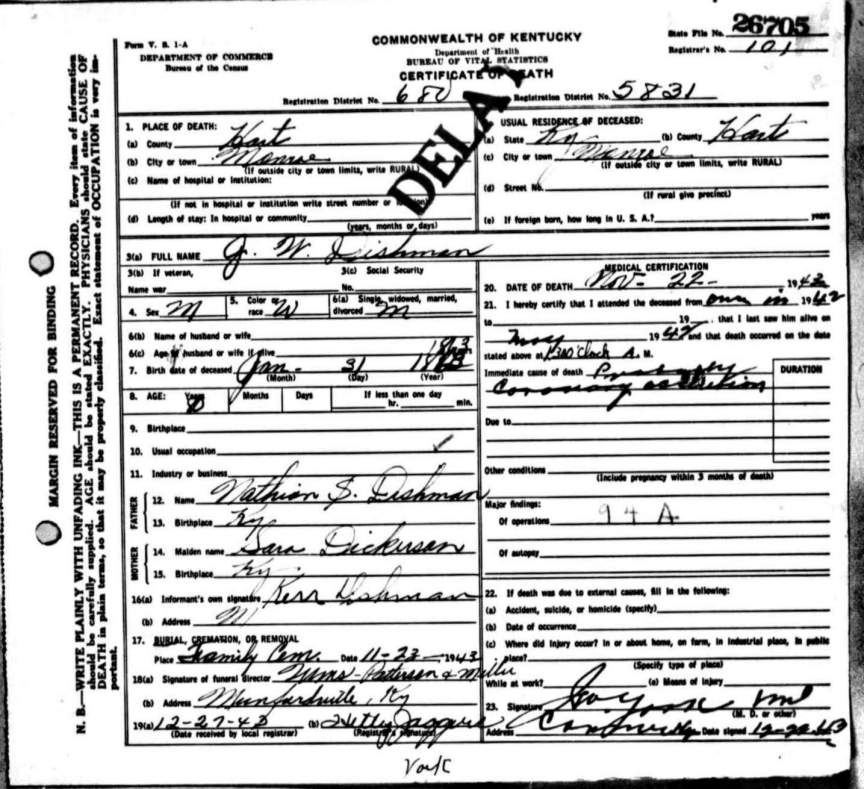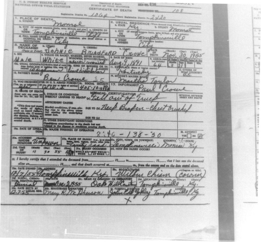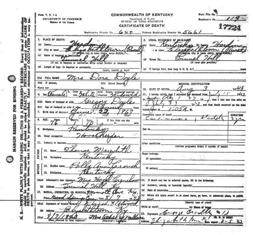 | Darnell, Benjamin Franklin | provided by Green Co. Genealogical Society | |||