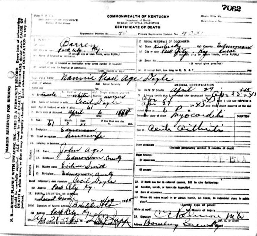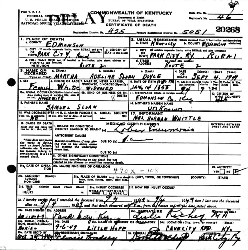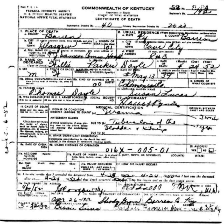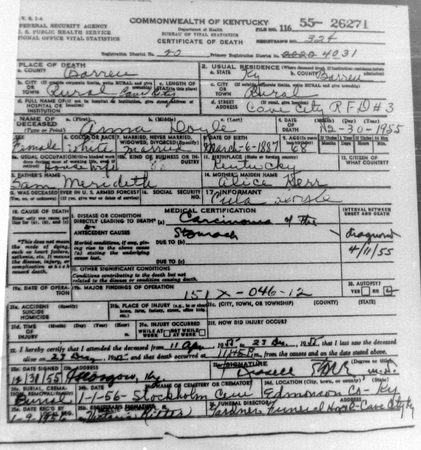 | Doyle, Johnnie Curtis | Edith Bastin |