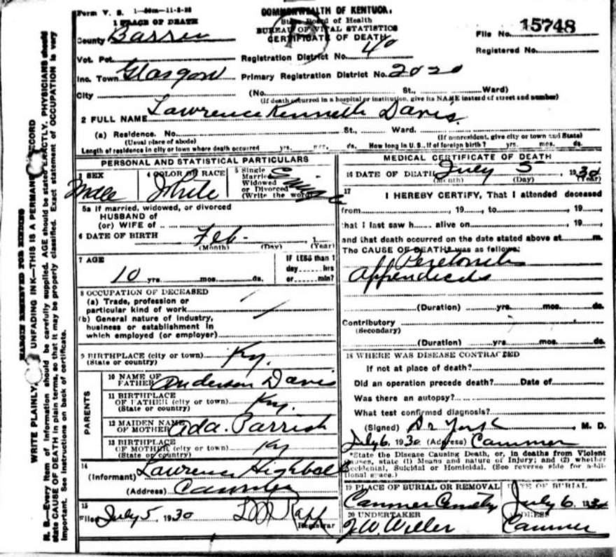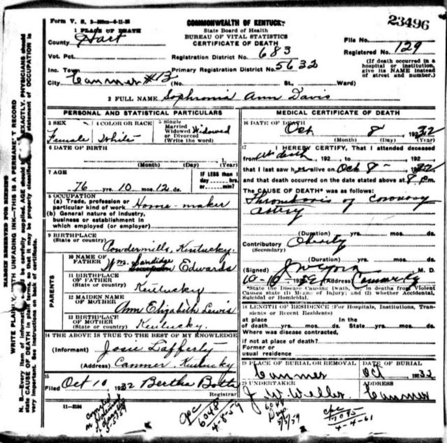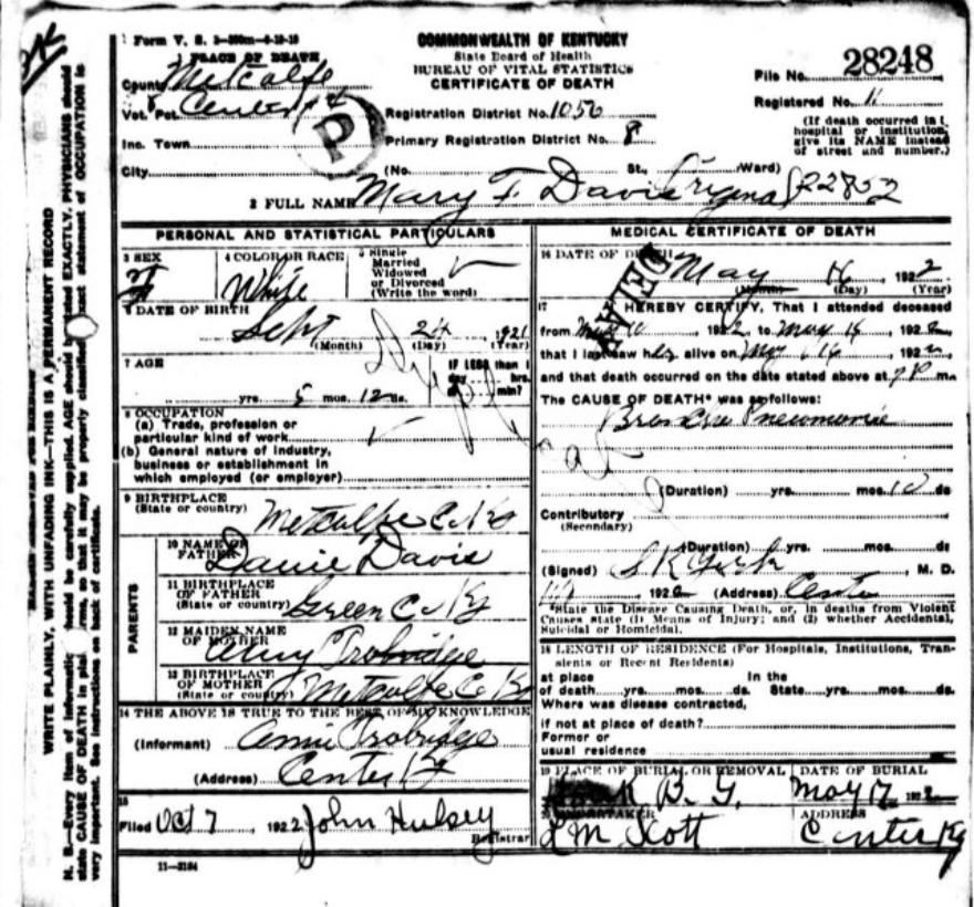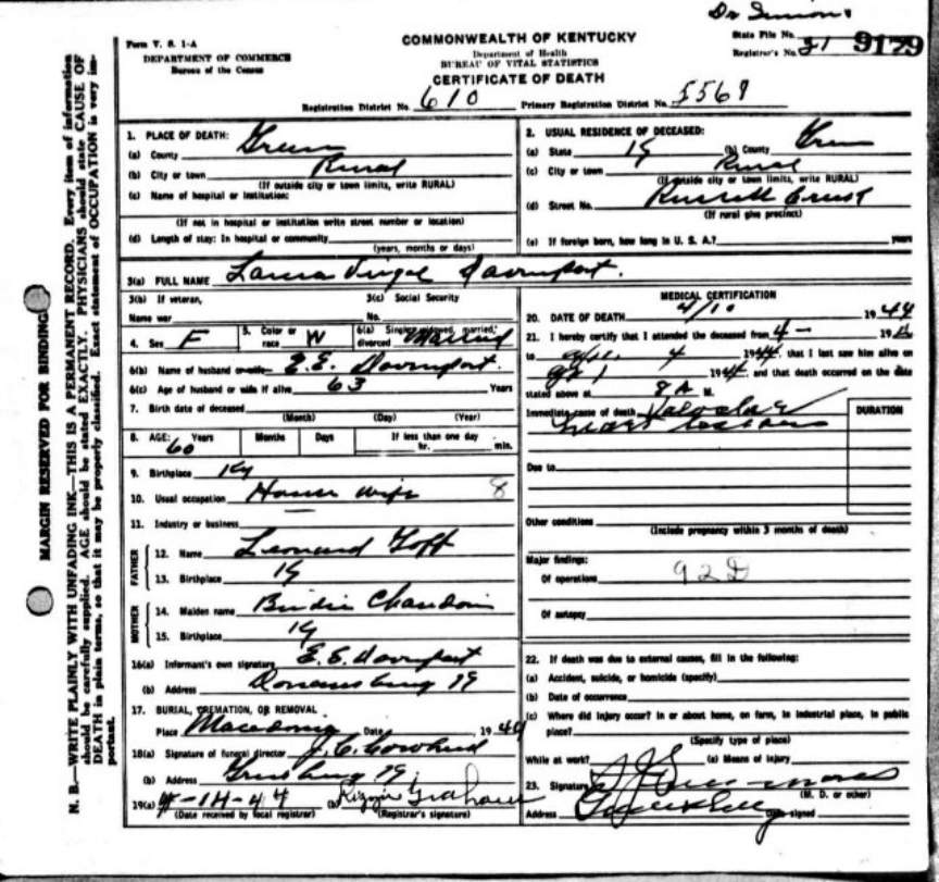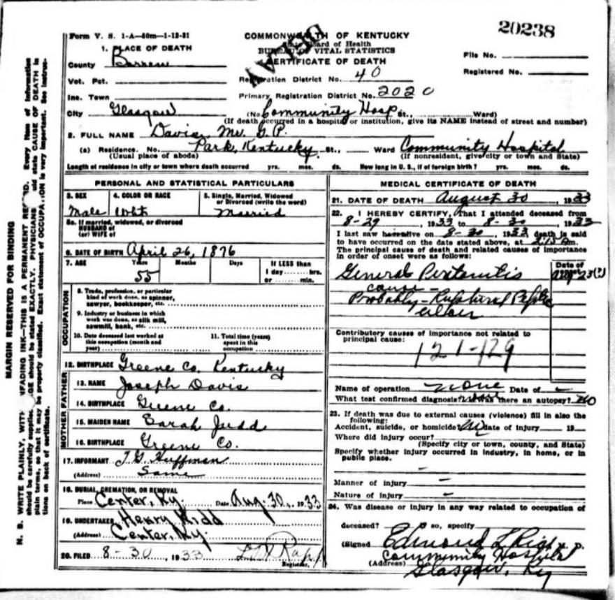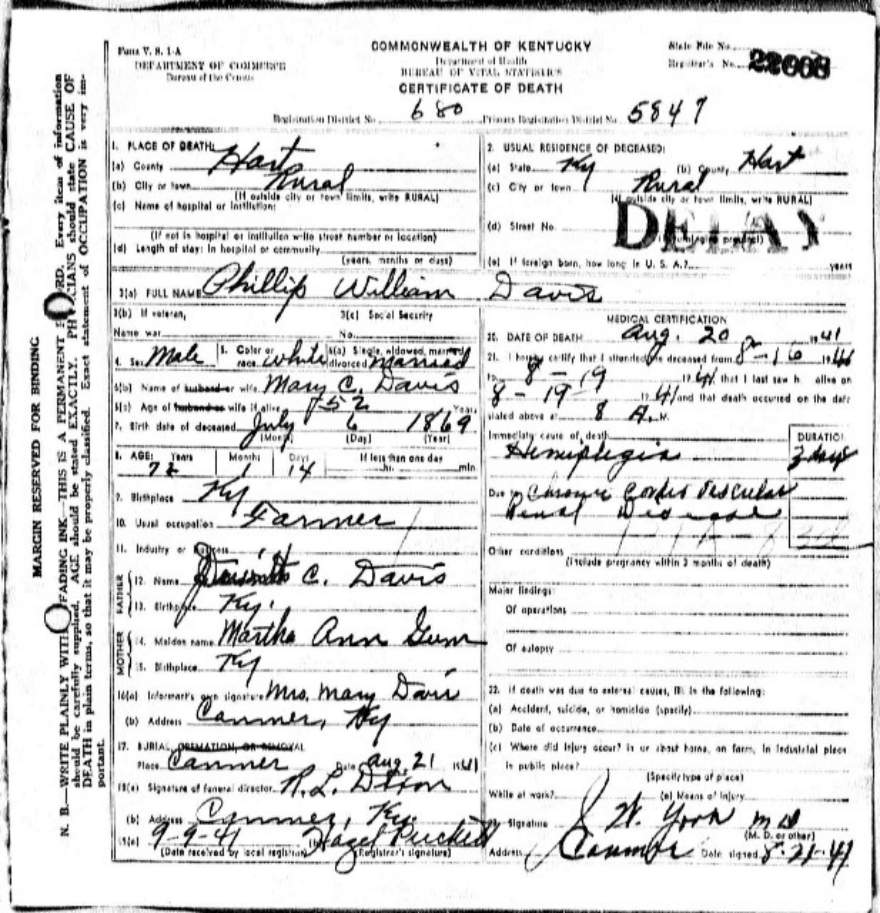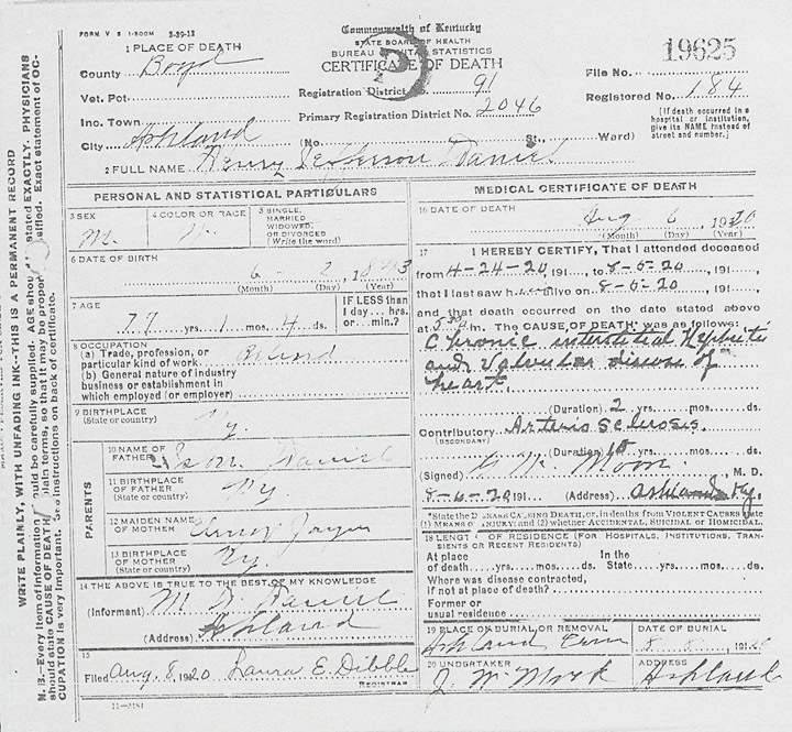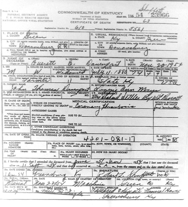 | Davenport, Paul Sullivan | provided by Green Co. Genealogical Societ | |||
