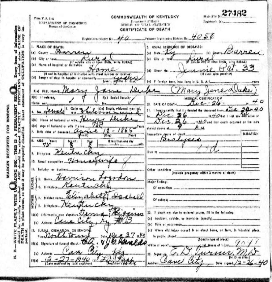| Duke, Rhoda | Hart | 03/31/1935 | Edith Bastin |