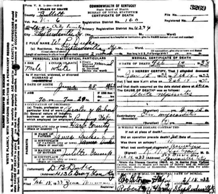 | Duke, W L | Bullitt | 02/14/1933 | Edith Bastin |