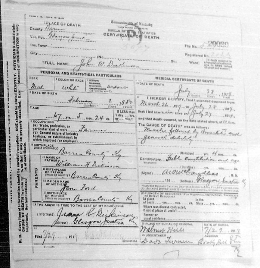 | Dickinson, John W. | Barren |