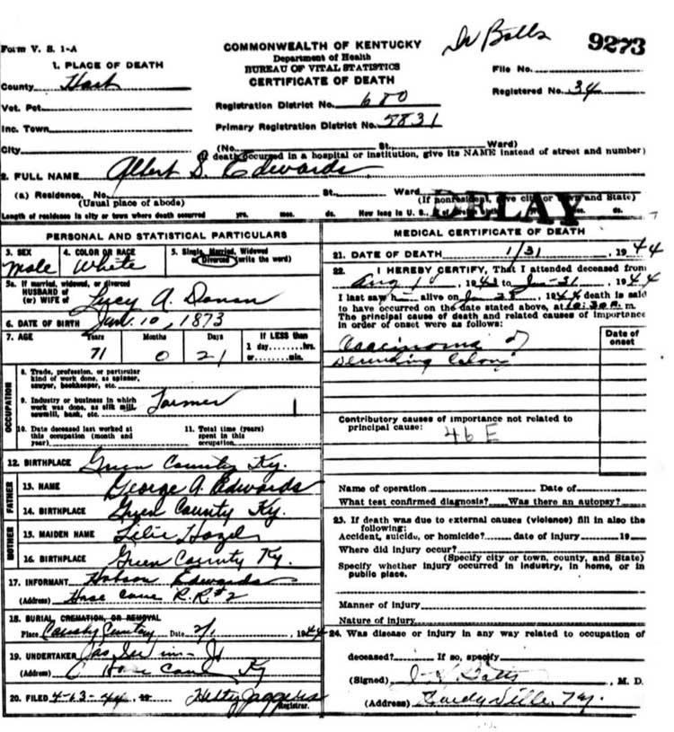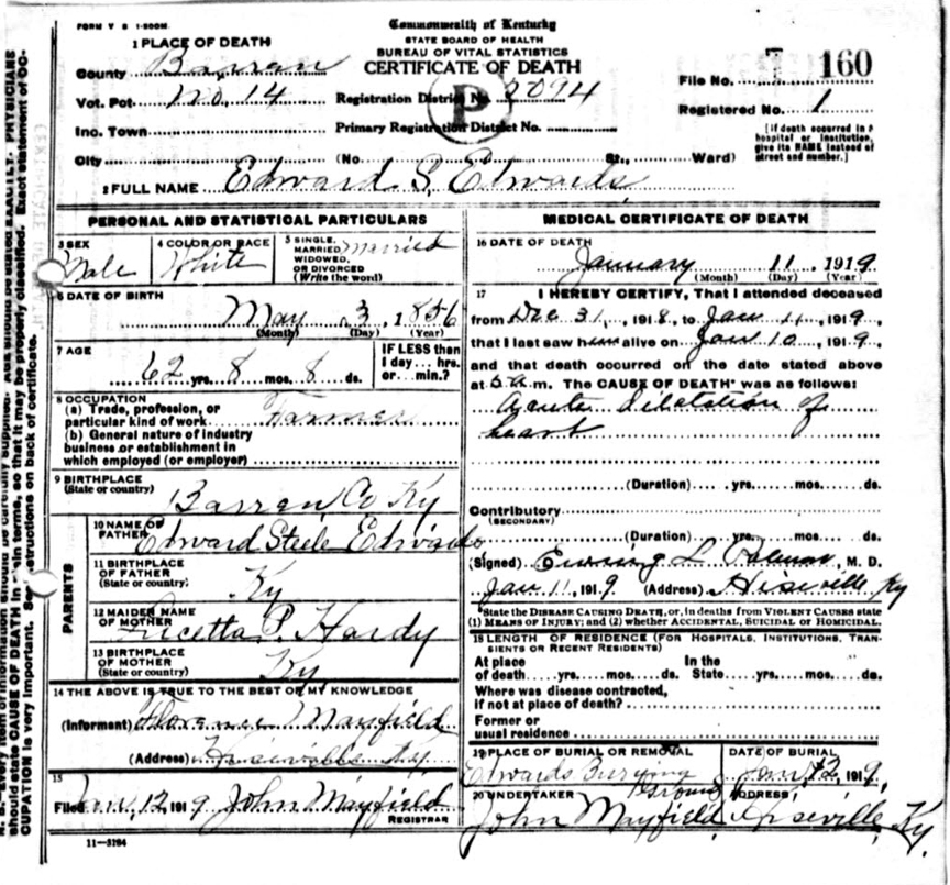 | Edwards, Edward S | Barren | 01/11/1919 | ||