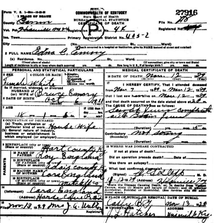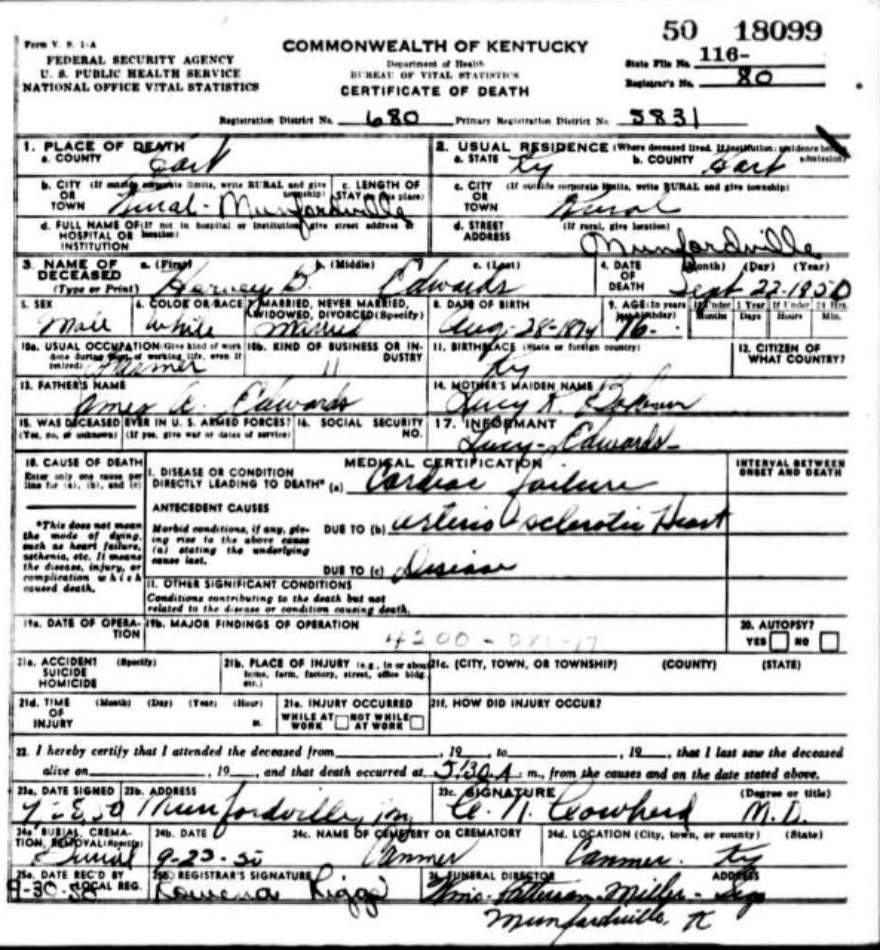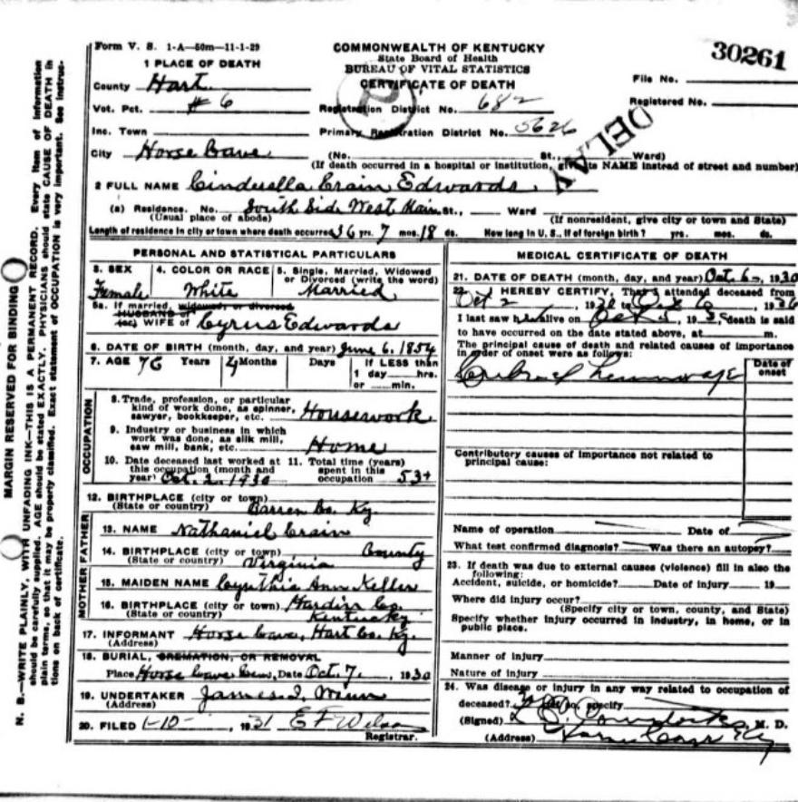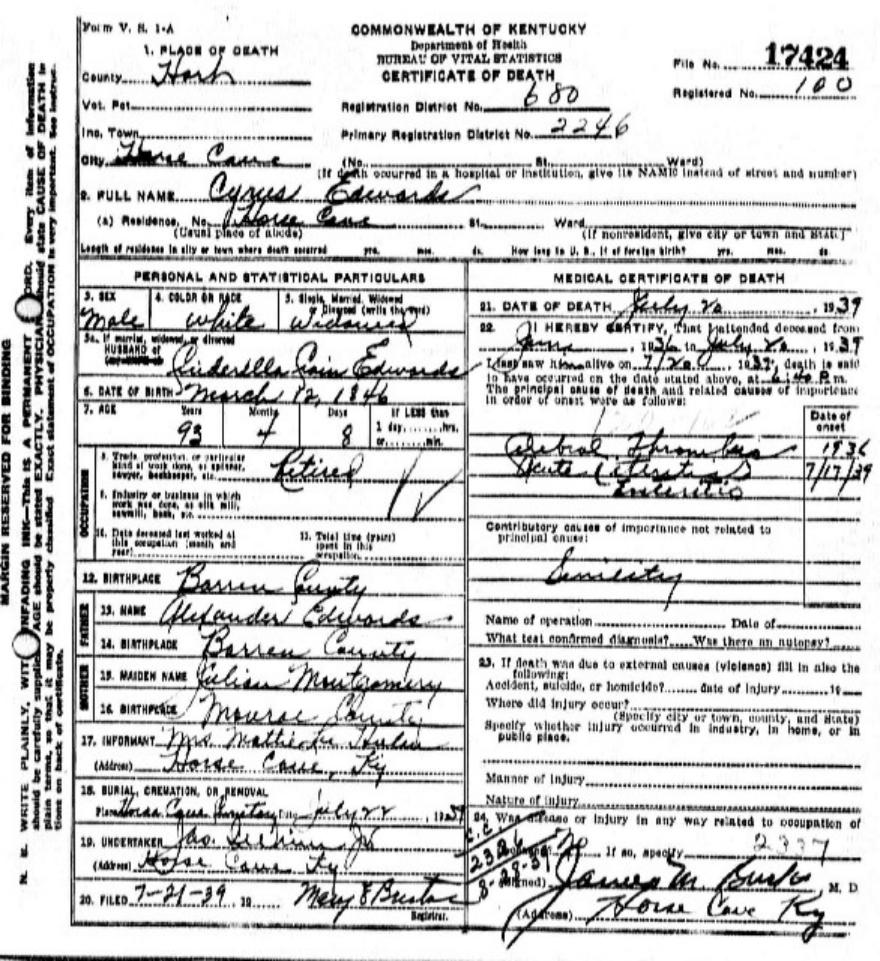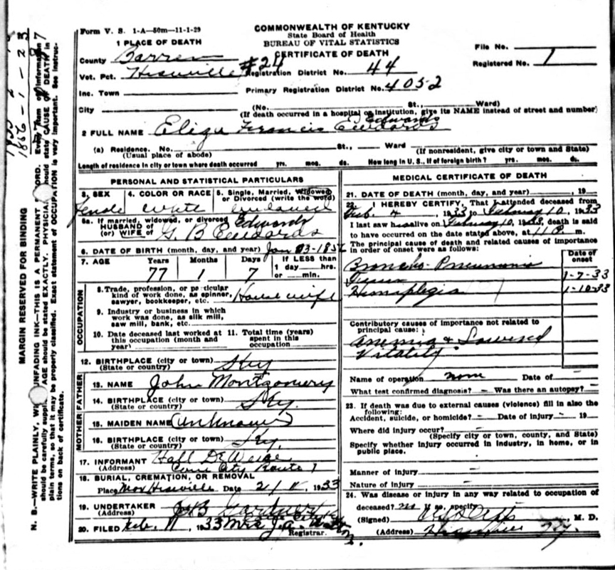 | Edwards, Eliza Francis | Barren | 02/10/1933 | ||