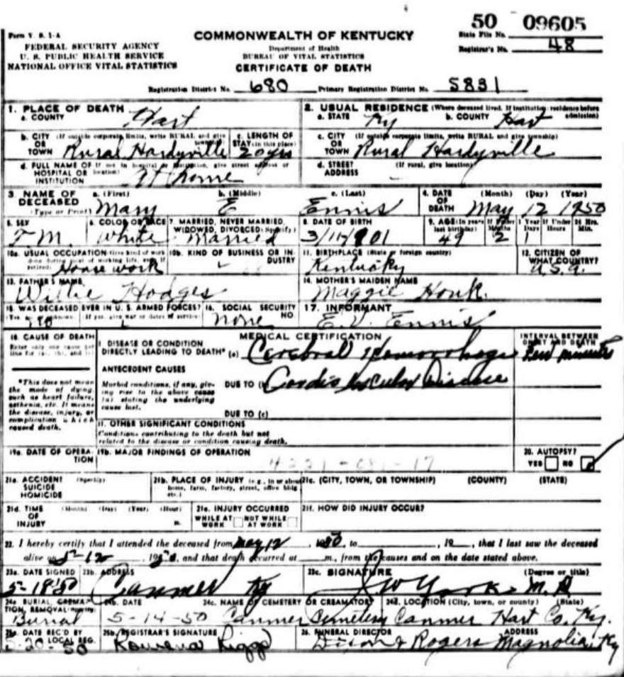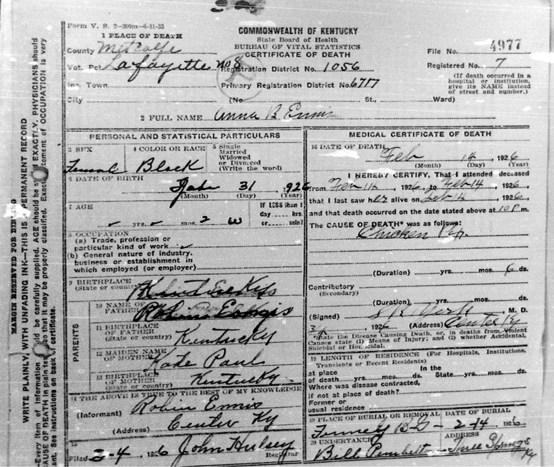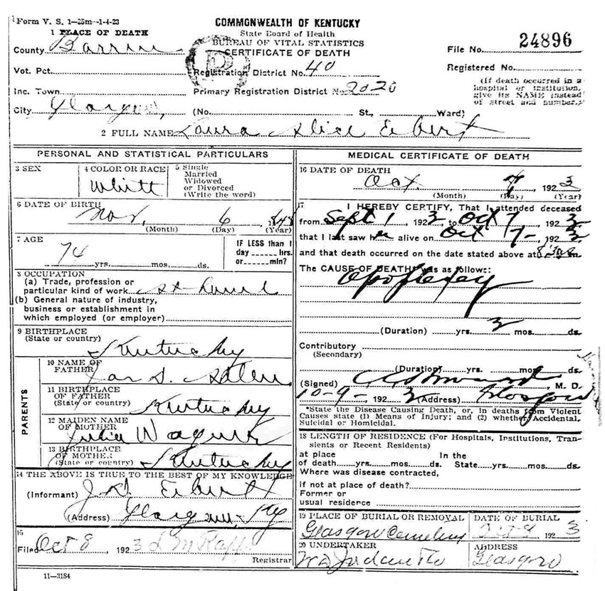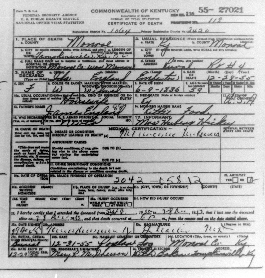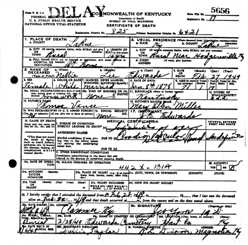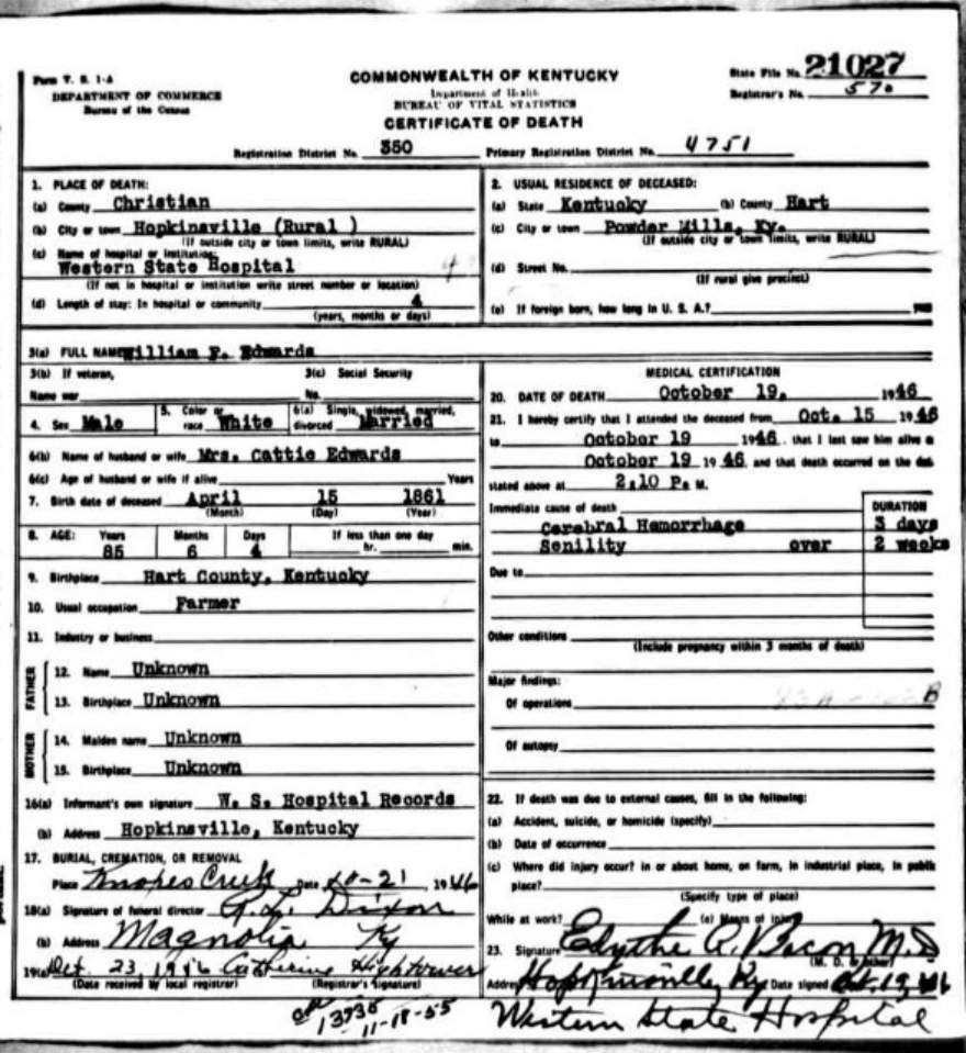 | Edwards, Eliza Francis | Barren | 02/10/1933 | ||