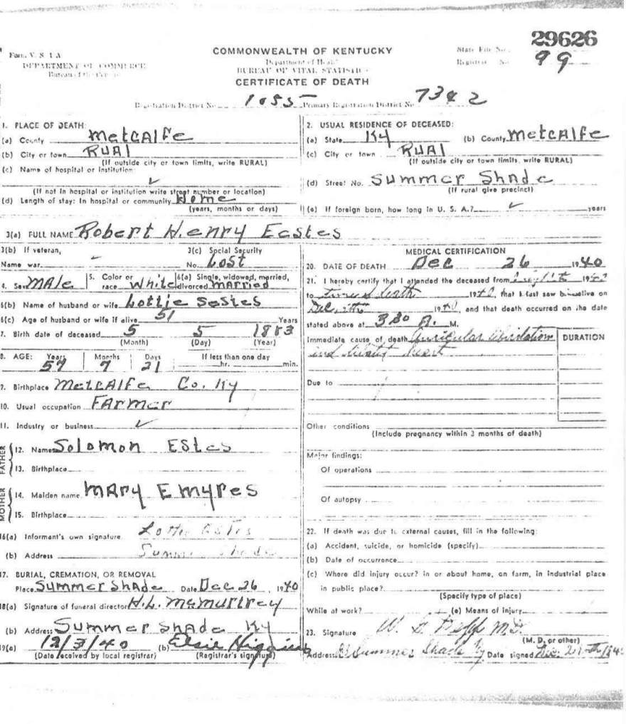 | Estes, Robert Henry | provided by Green Co. Genealogical Society | |||