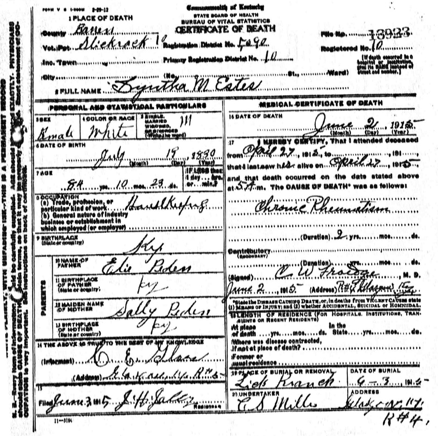 | Estes, Synthia/Sinthia Malinda Peden | Barren |