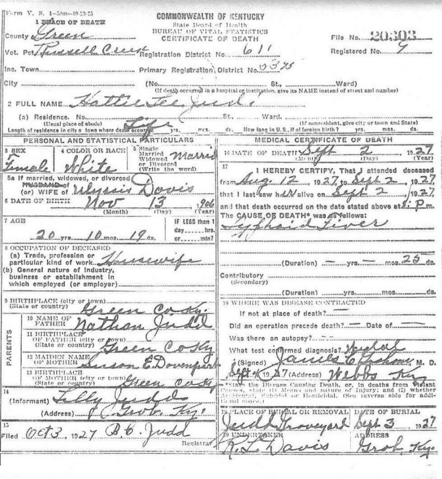 | Judd, Hattie Lee | provided by Green Co. Genealogical Society | |||