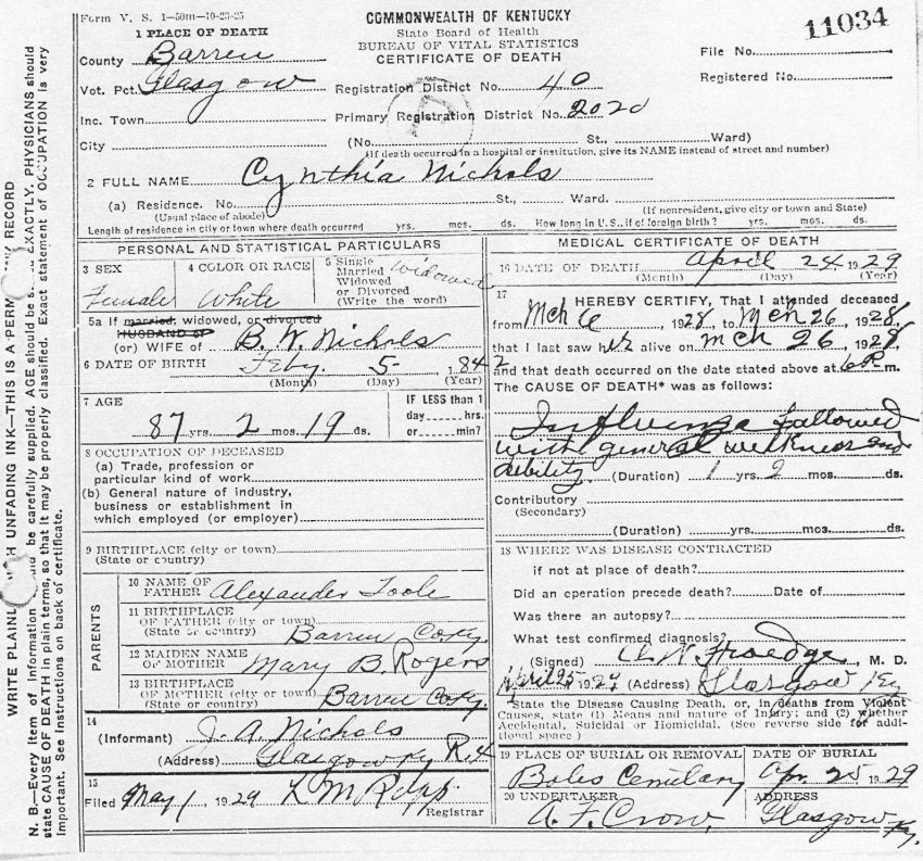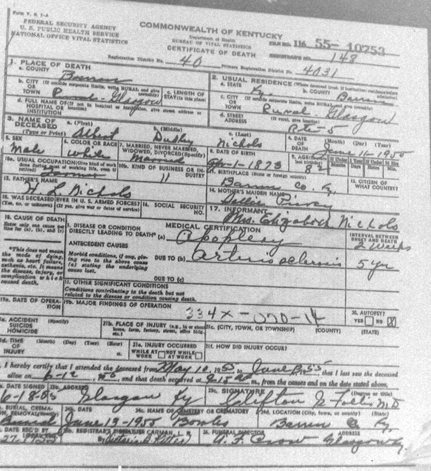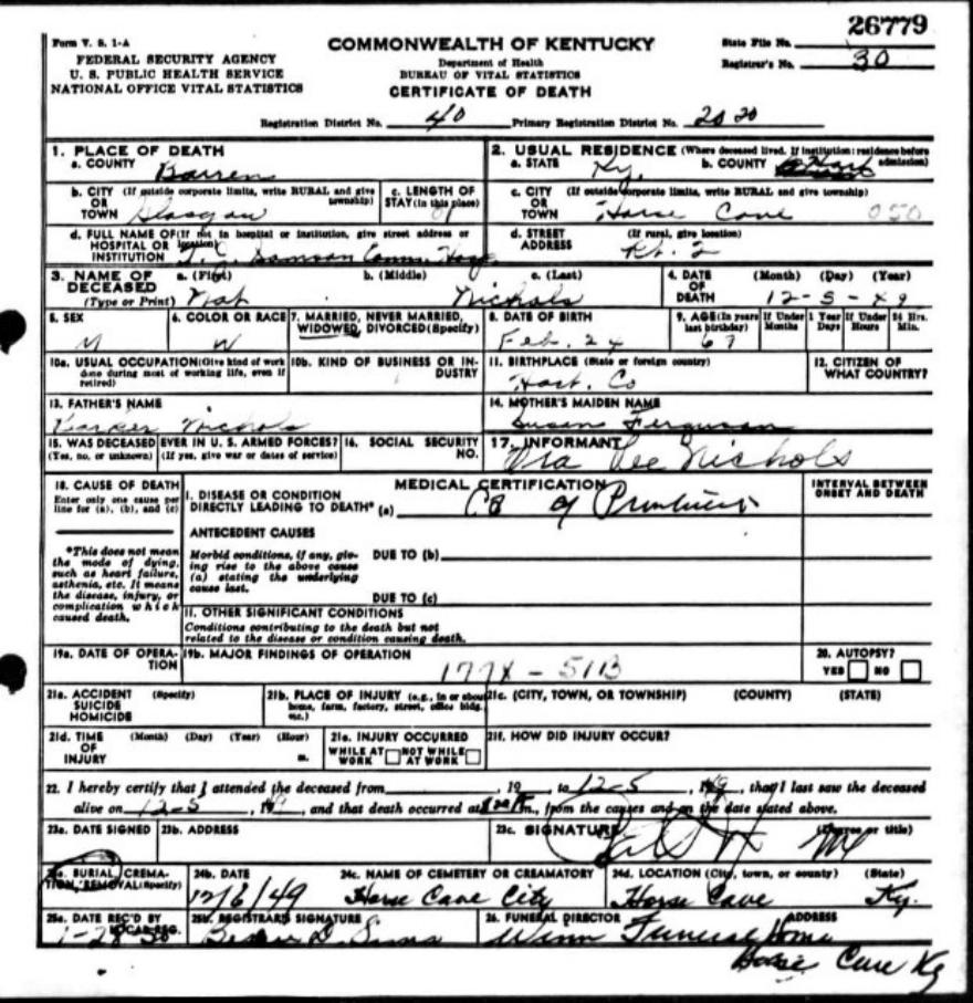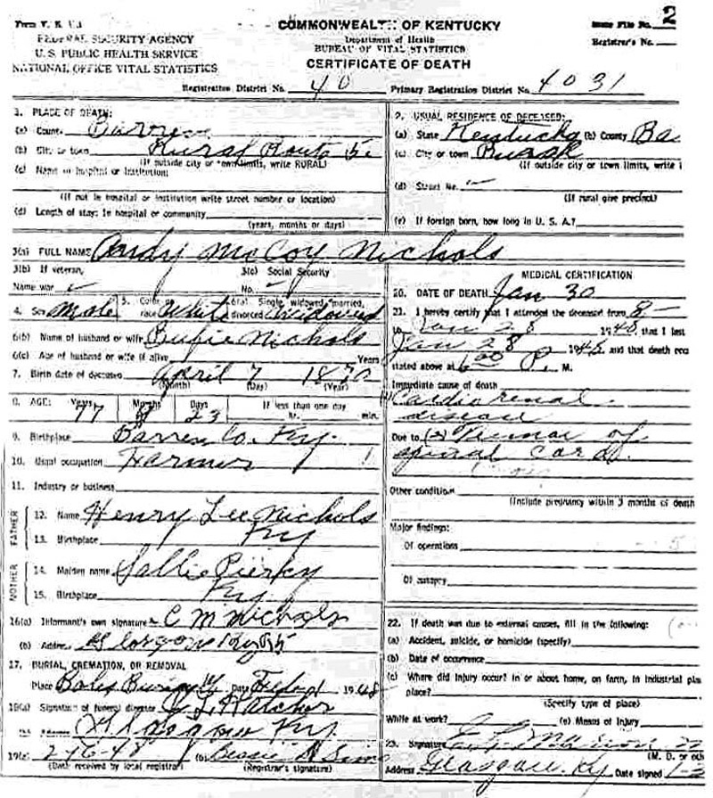Death Certificates "Nichols" |