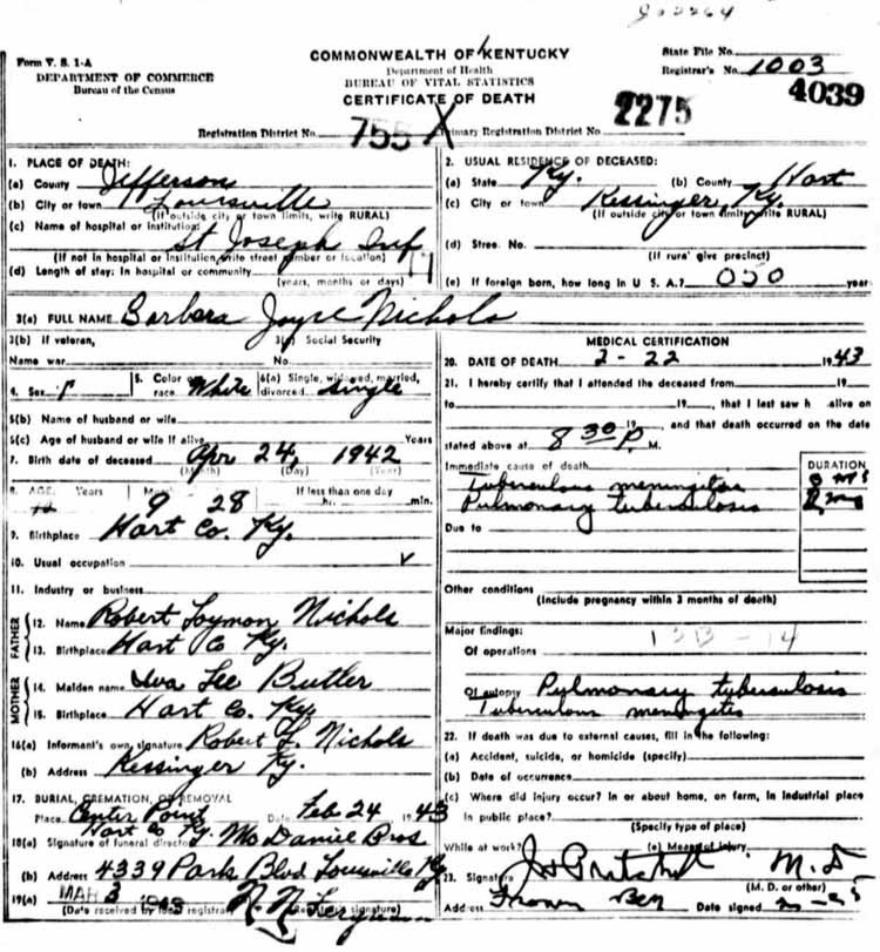 | Nichols, Myrtle | Barren