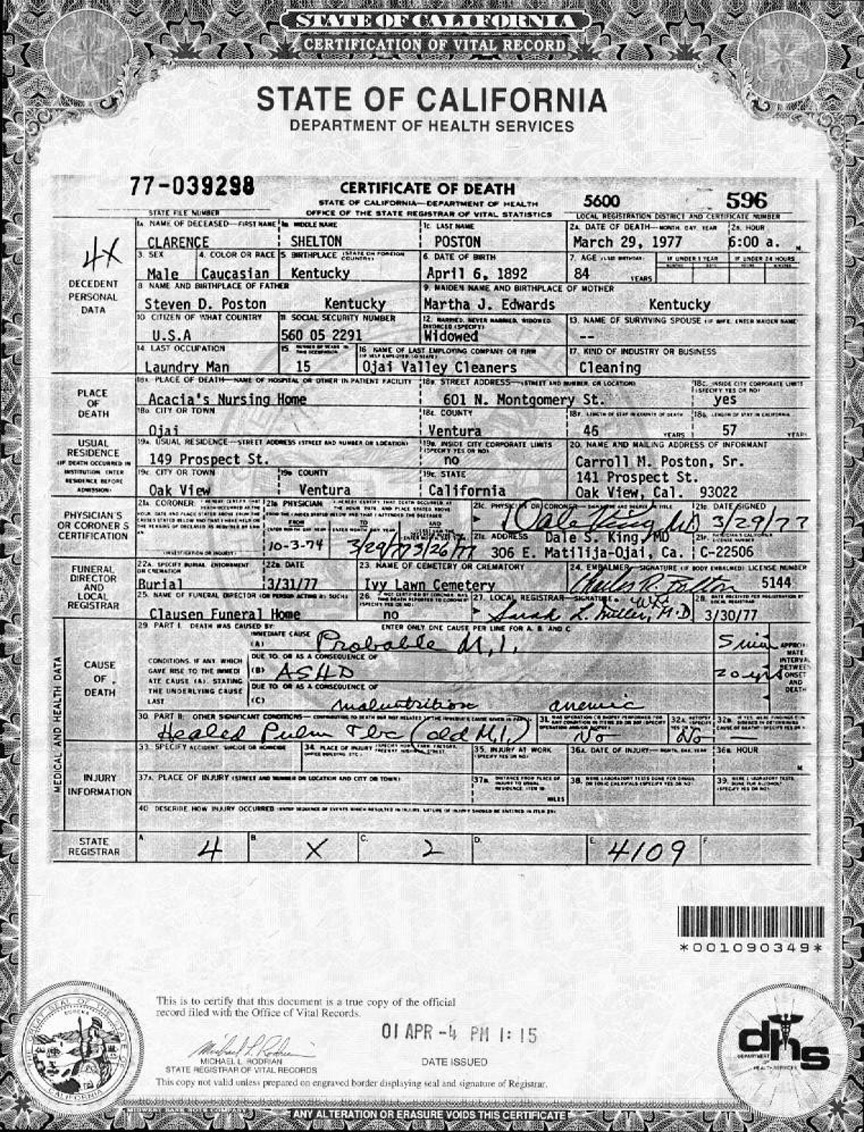 | Poston, Paul Virgil | 03/28/1919 | E. Bastin |