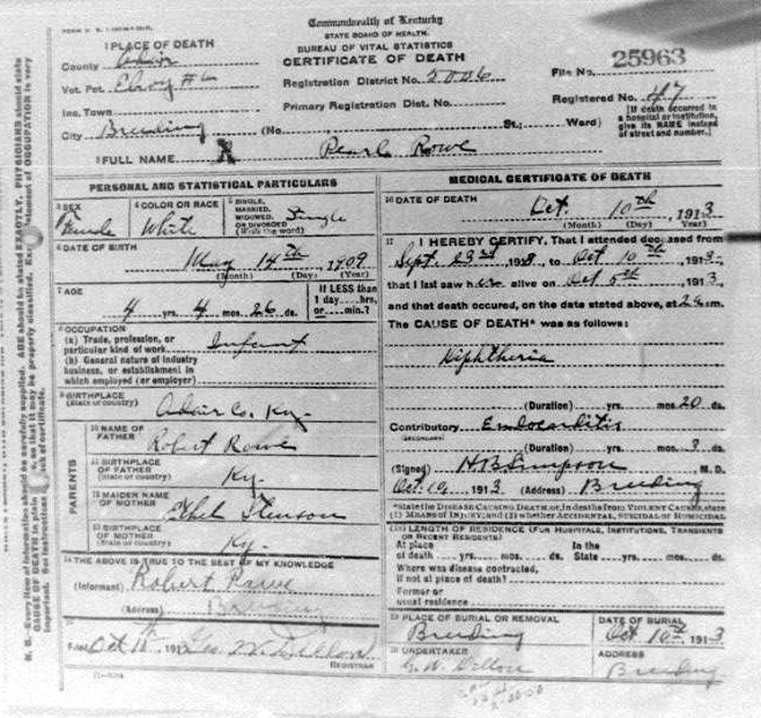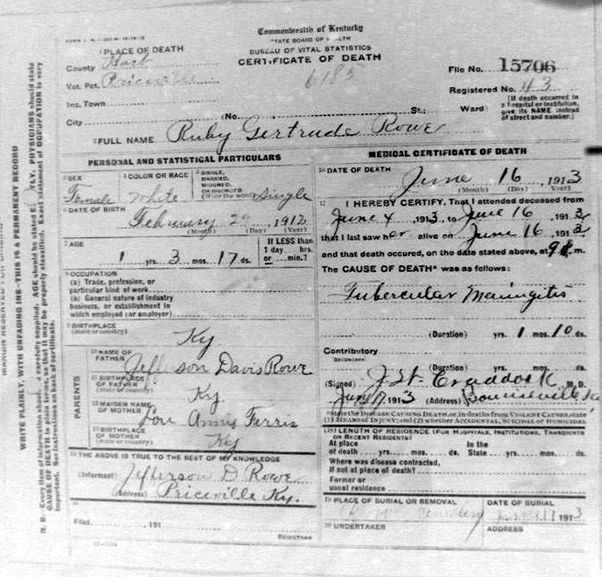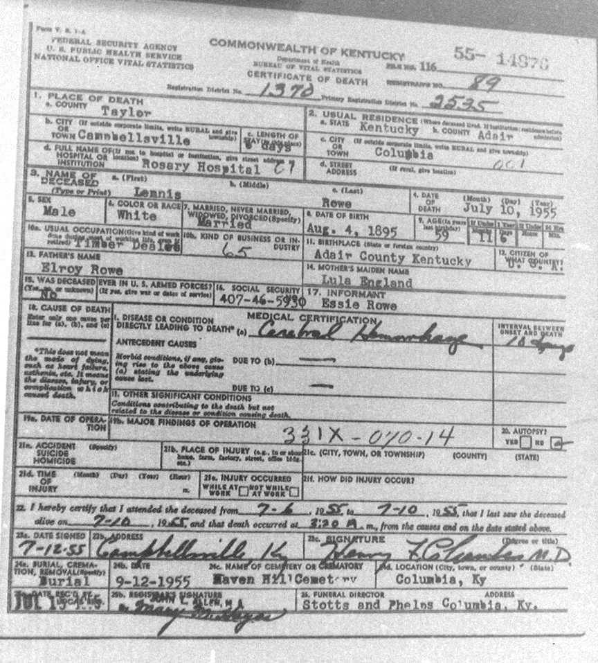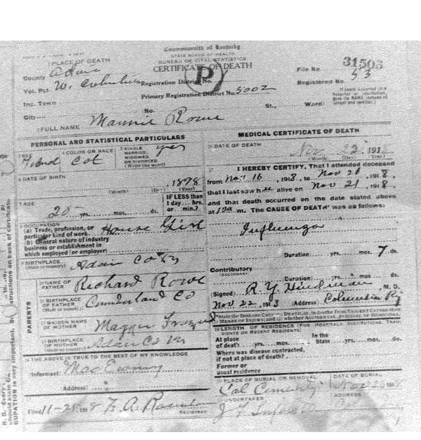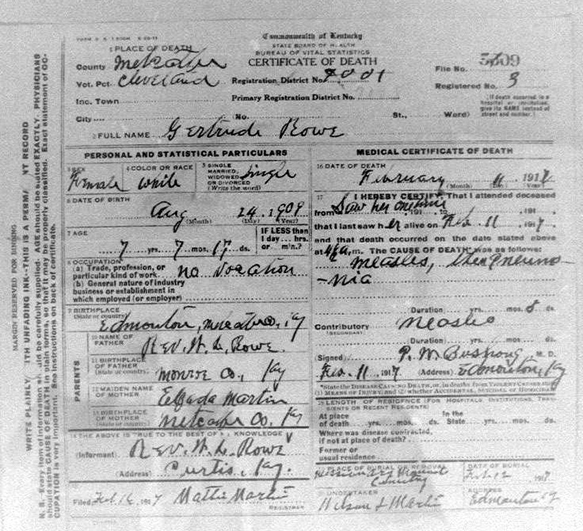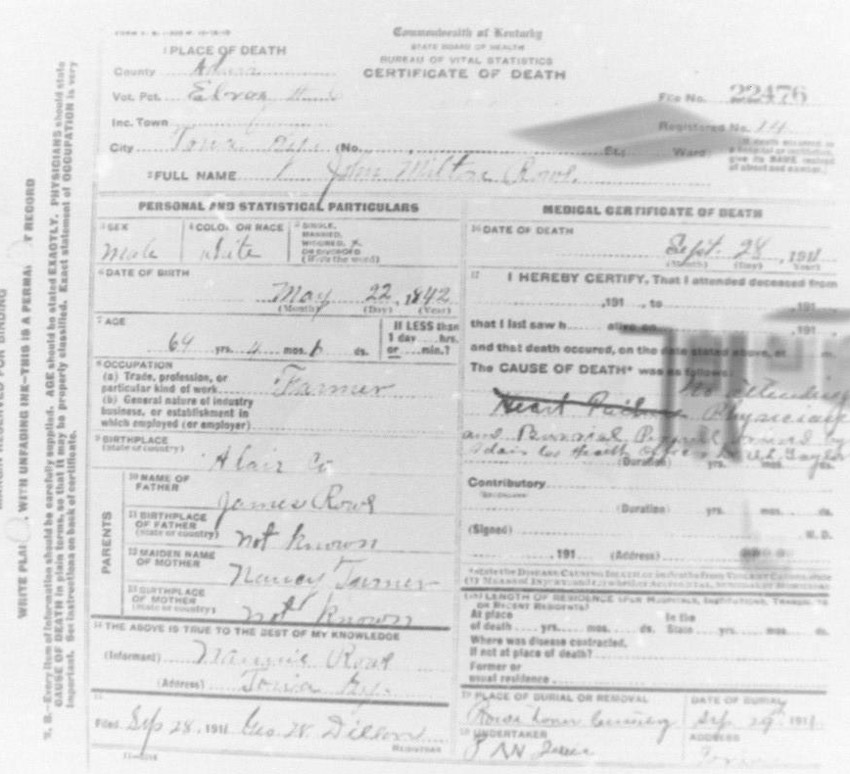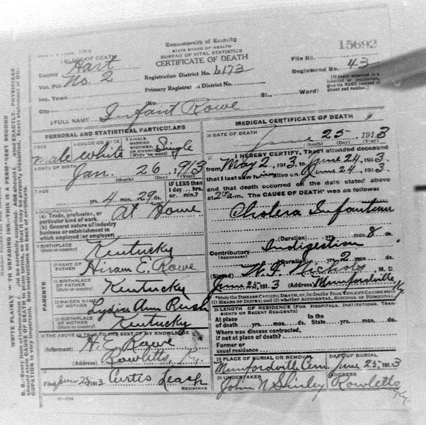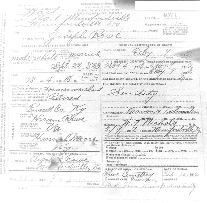Death Certificates "Rowe/Row/Roe" |