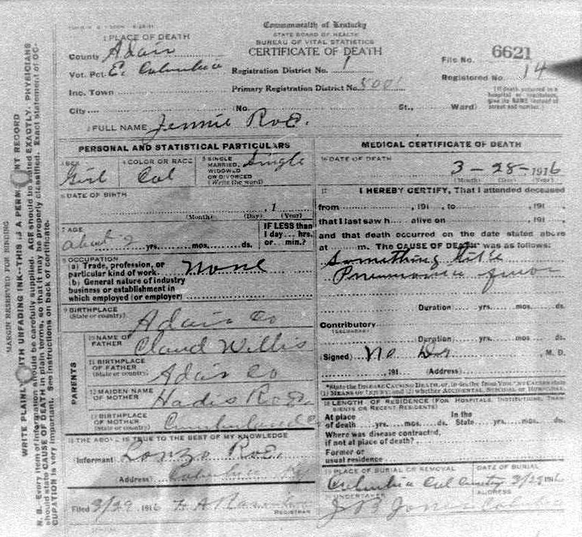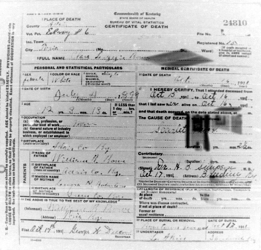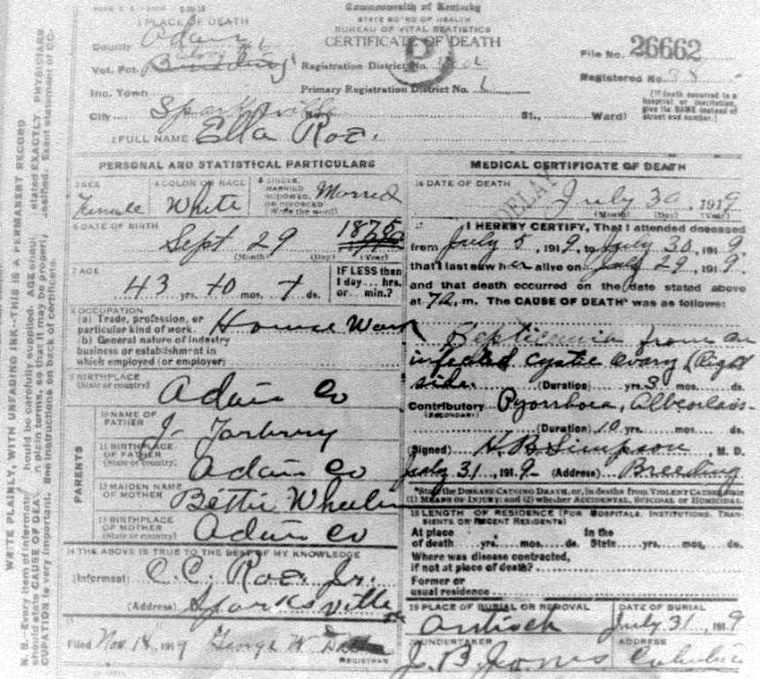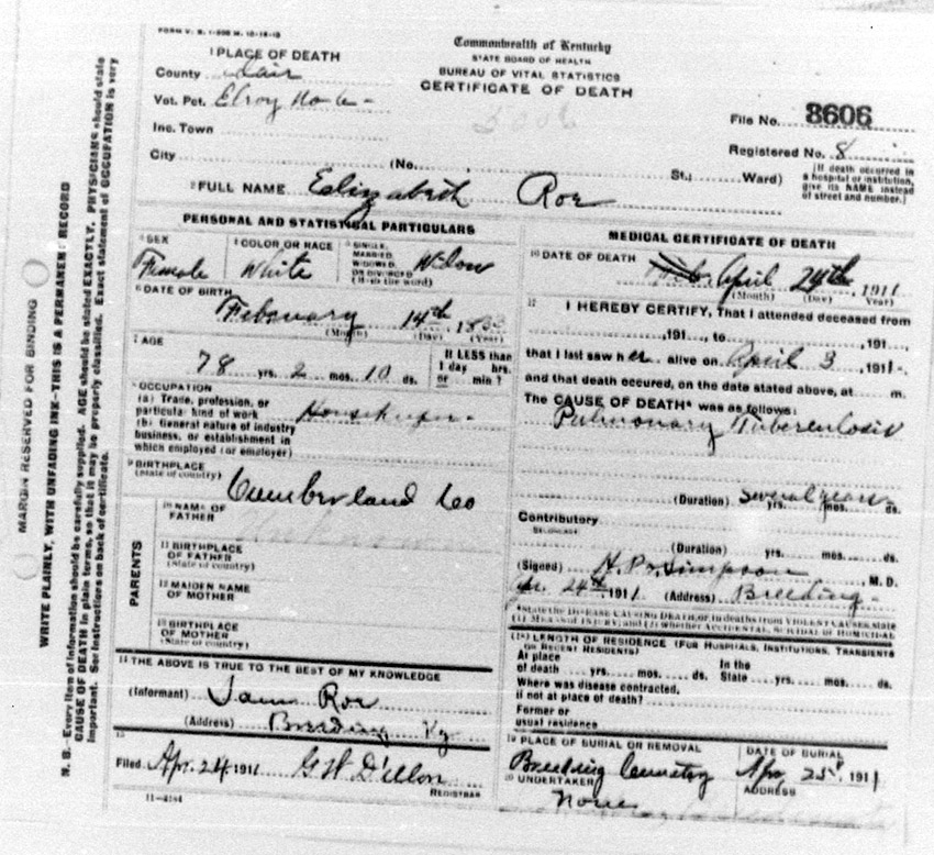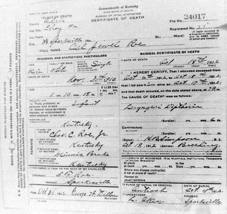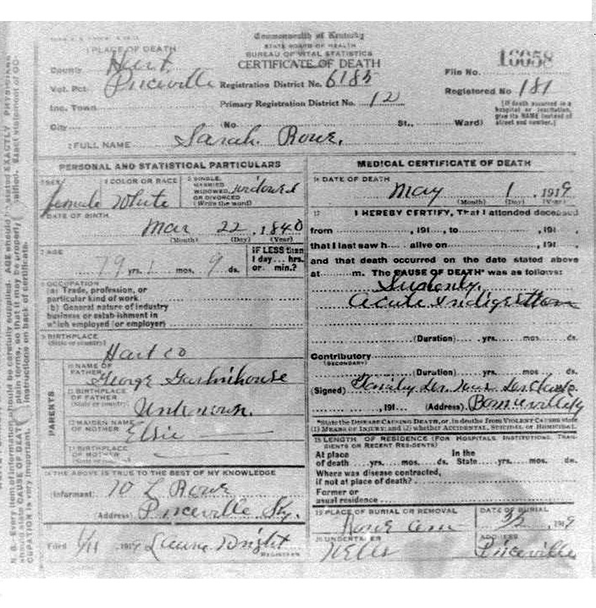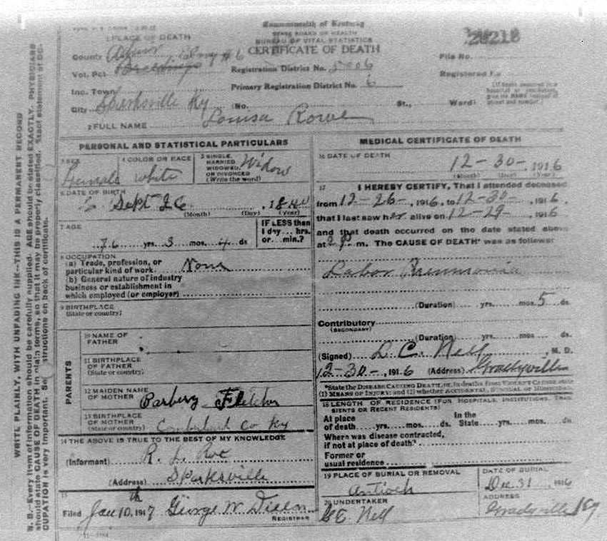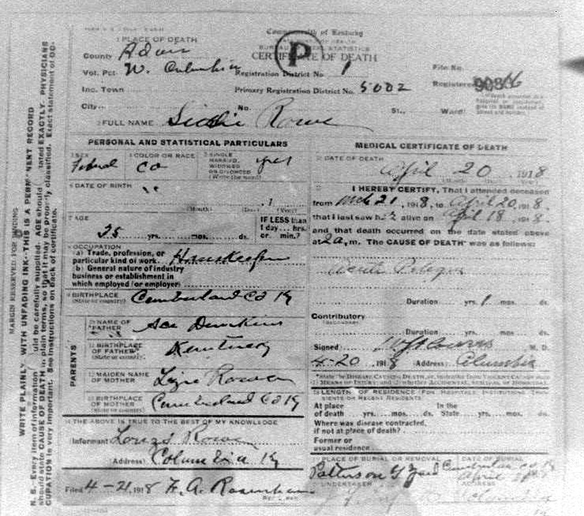 Death Certificates "Rowe/Row/Roe" |