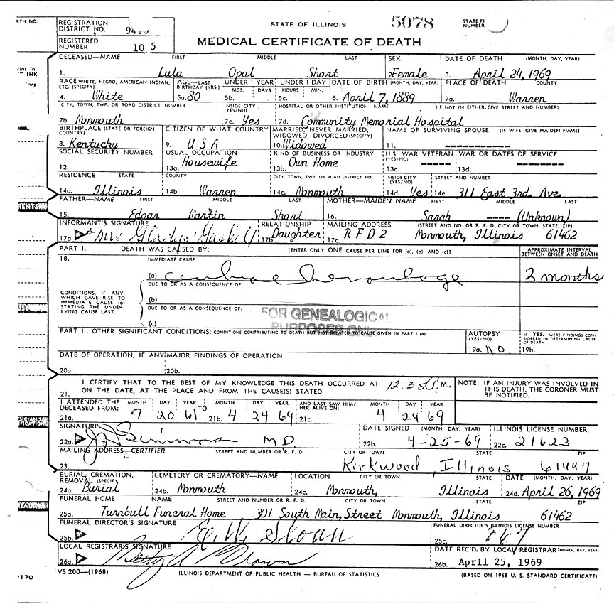 mother's and Dad's names. Edgar Martin Short was her husband....not her father.