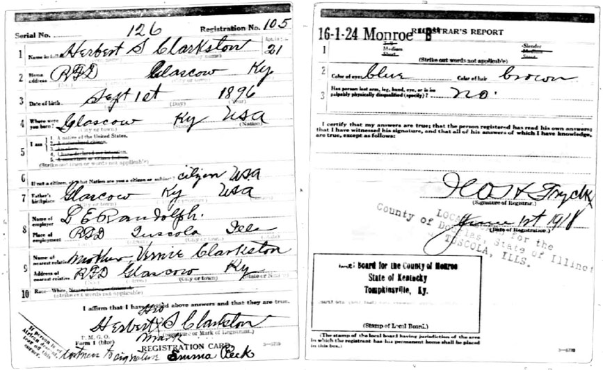 | Clarkson, Herbert | WWI | Draft Card | Sheila Wisdom-Hardin |
