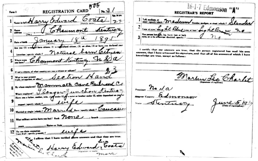 | Coates, Wm | WWI | Draft Card | Sheila Wisdom-Hardin |