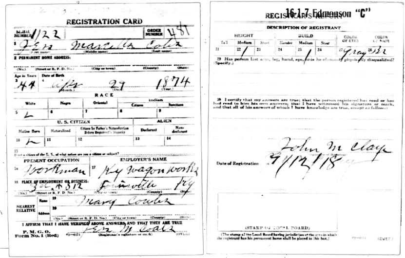| Coats, Claud | WWI | Draft Card | Sheila Wisdom-Hardin |