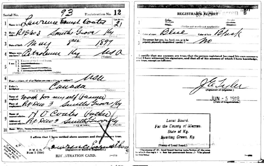 | Coats, Lawrence Earnest | WWI | Draft Card | Sheila Wisdom-Hardin |