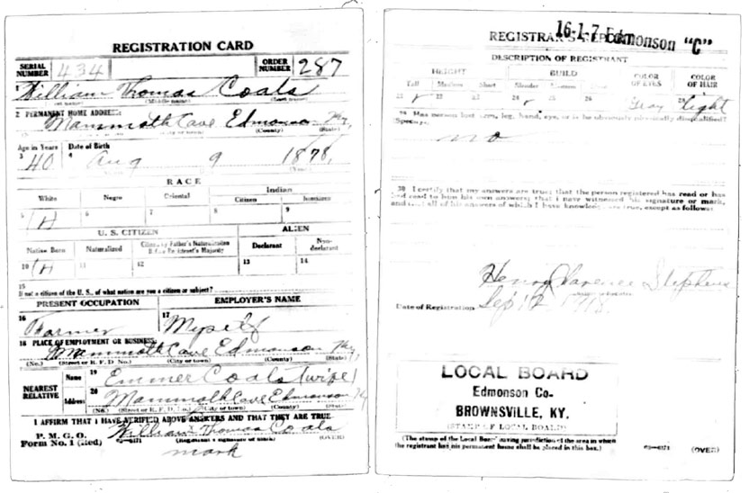 | Coats, William Thomas | WWI | Draft Card | Sheila Wisdom-Hardin |