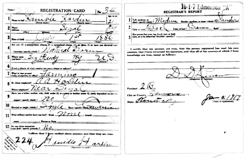 | Hardin, Hanible | WWI | Draft Card | Sheila Wisdom-Hardin |