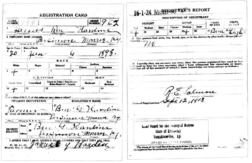 | Hardin, Ben | WWI | Draft Card | Sheila Wisdom-Hardin |