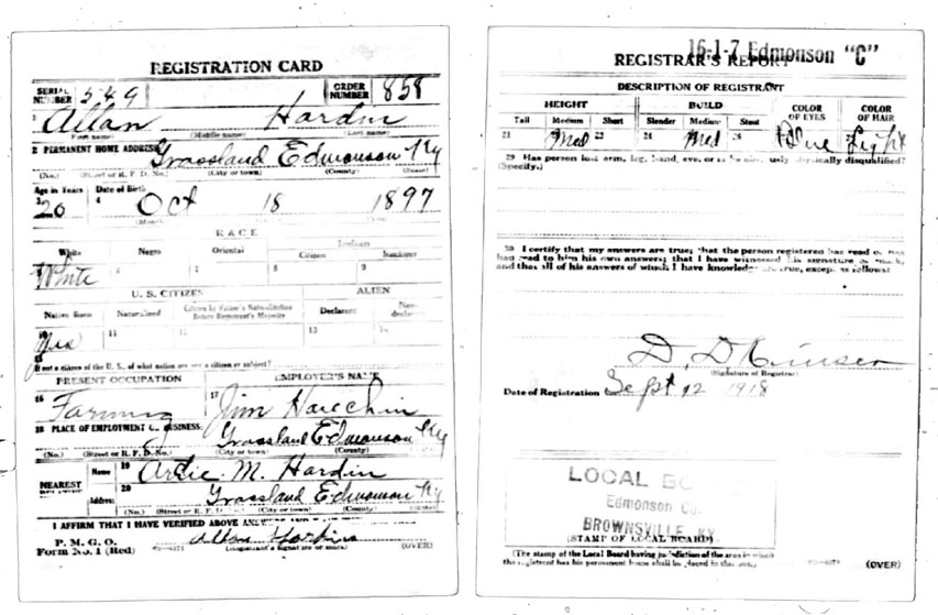 | Hardin, Allan | WWI | Draft Card | Sheila Wisdom-Hardin |