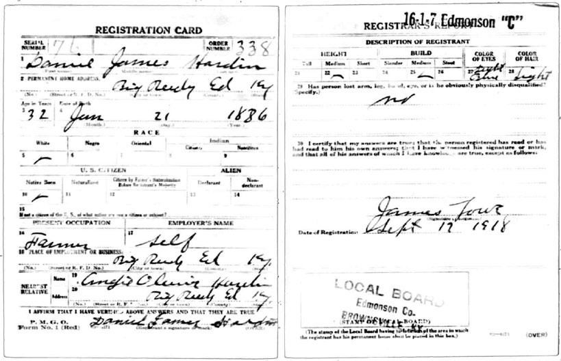 | Hardin, Danial James | WWI | Draft Card | Sheila Wisdom-Hardin |