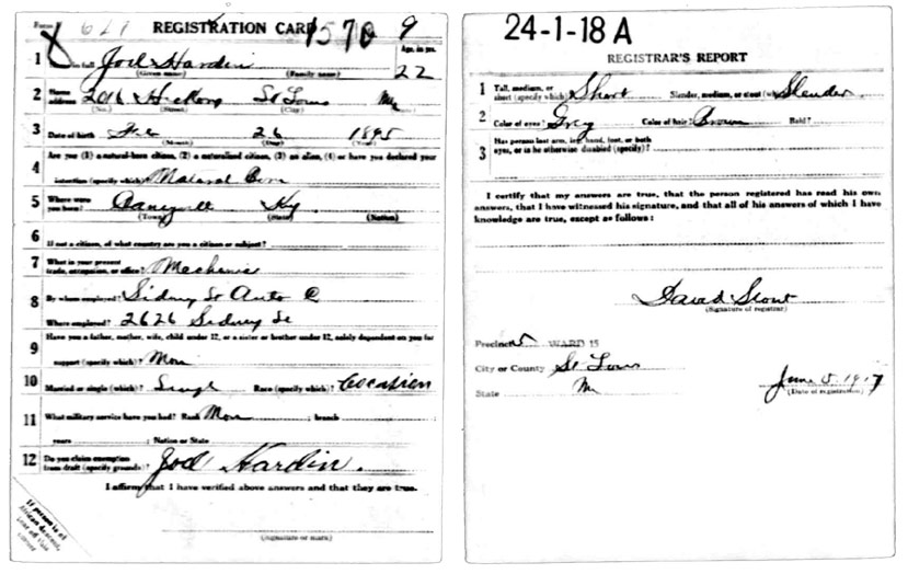 | Hardin, Joe | WWI | Draft Card | Sheila Wisdom-Hardin |