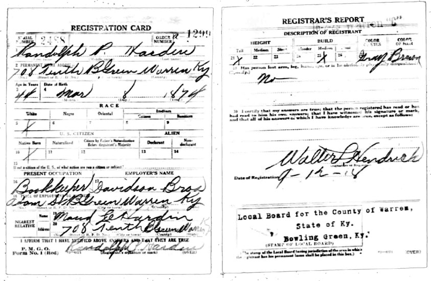 | Hardin, Randolph P | WWI | Draft Card | Sheila Wisdom-Hardin |