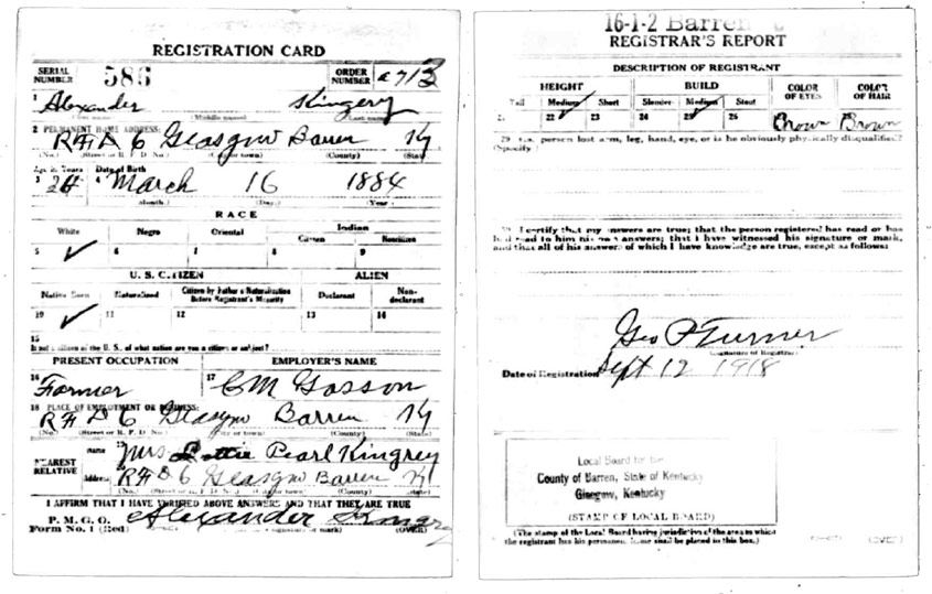 | Kingery, Alexander | WWI | Draft Card | Sheila Wisdom-Hardin |