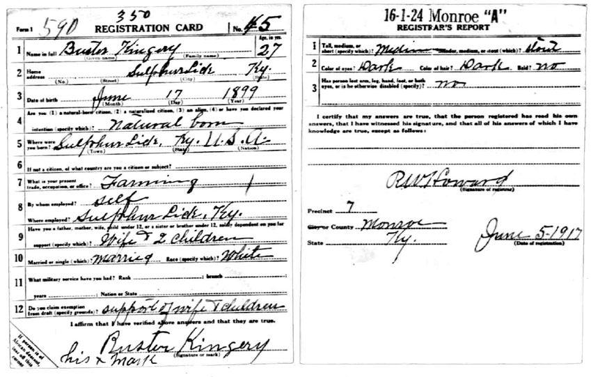 | Kingery, Buster | WWI | Draft Card | Sheila Wisdom-Hardin |