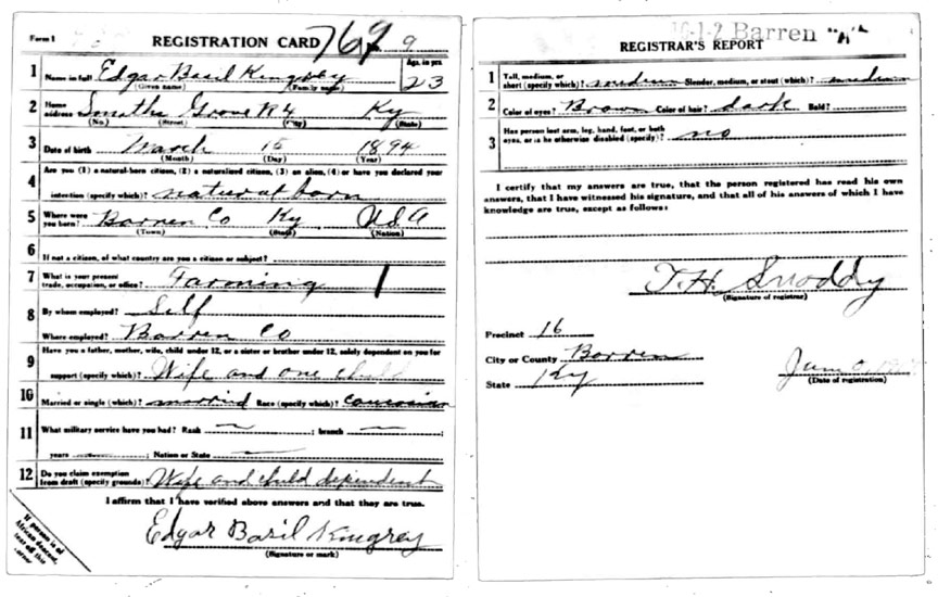 | Kingrey, Edgar Basil | WWI | Draft Card | Sheila Wisdom-Hardin |