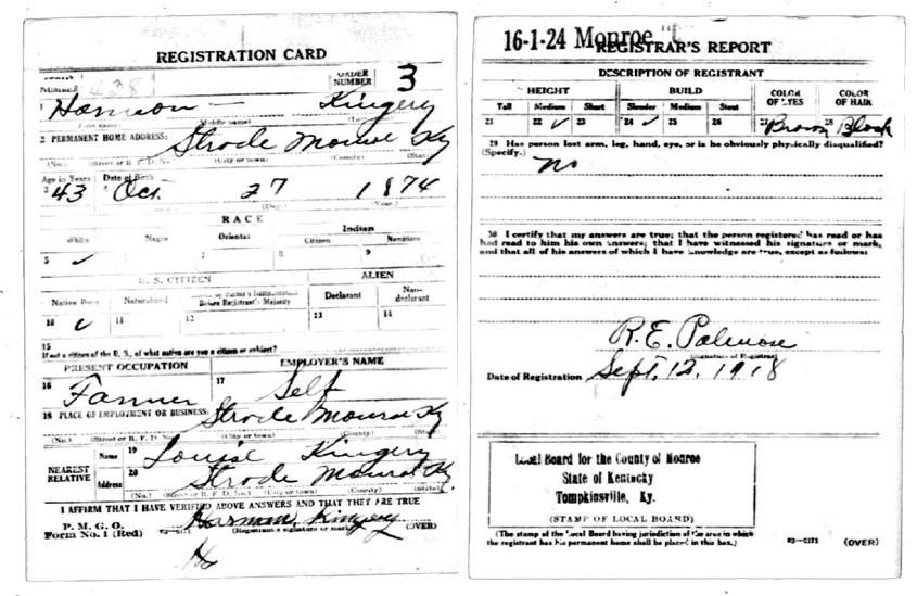 | Kingery, Harmon | WWI | Draft Card | Sheila Wisdom-Hardin |